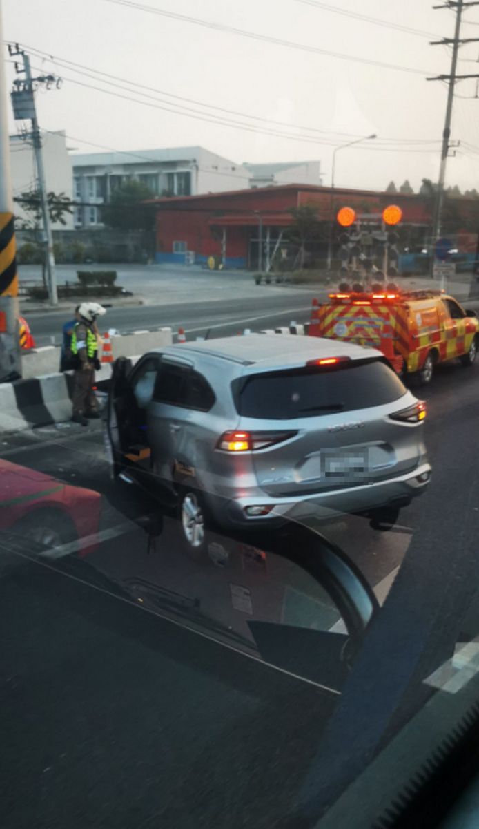 07.04 น. ติดขัดมาก! รถนั่งส่วนบุคคล เสียหลักพุ่งชนขอบทาง ถนนมอเตอร์เวย์ (ทล.7) ขาออก กม.1 กีดขวางสองช่องทางซ้าย เจ้าหน้าที่กำลังดำเนินการเคลื่อนย้าย รถติดมาก #รายงานจราจร #รถติด #อุบัติเหตุ #FM91
