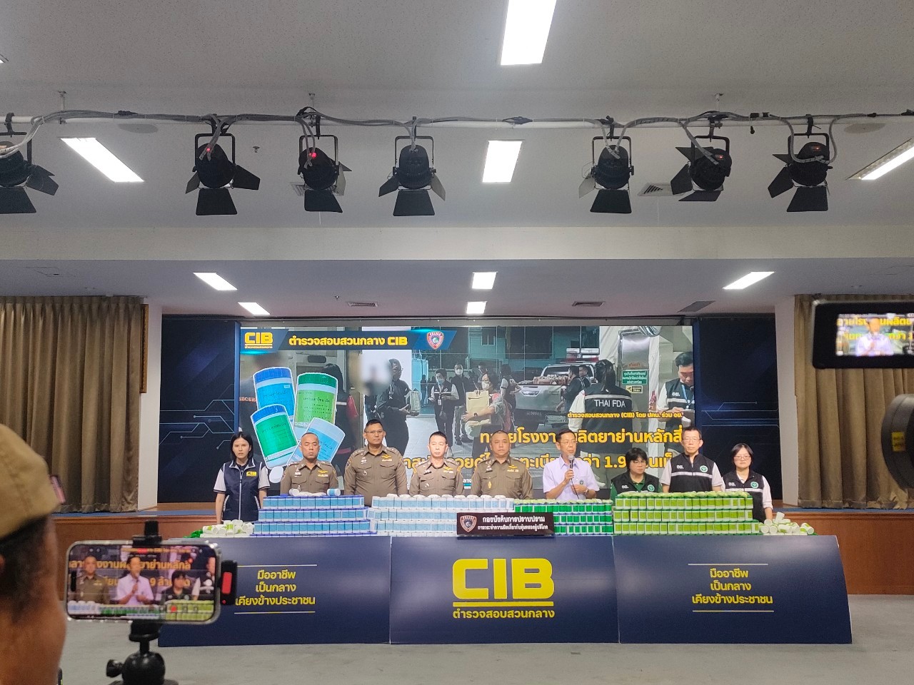 ต่อมาเมื่อวันที่ 24 มกราคม 2568 เจ้าหน้าที่ตำรวจ กก.4 บก.ปคบ. ได้รับการประสานจากสำนักงานคณะกรรมการอาหารและยา (อย.) ว่ามีการลักลอบผลิตยาสเตียรอยด์ที่ไม่ได้ขึ้นทะเบียนตำรับยาอยู่ย่านหลักสี่ กรุงเทพมหานคร จึงได้ร่วมกันนำกำลังเข้าตรวจสอบ ผลการตรวจค้นพบผู้รับอนุญาตผลิตยาแผนปัจจุบัน 1 ราย และพบการผลิตยาสเตียรอยด์ ไม่ขึ้นทะเบียนตำรับยา พร้อมตรวจยึดของกลาง ยา ฉลากสีฟ้าอ่อน ไม่ระบุสถานที่ผลิตยา ไม่ระบุเลขทะเบียนตำรับยา จำนวน 434,000 เม็ด ,ยา ฉลากสีฟ้า ไม่ระบุสถานที่ผลิตยา ไม่ระบุเลขทะเบียนตำรับยา จำนวน 409,000 เม็ด,ยา ฉลากสีเขียวเข้ม ไม่ระบุ สถานที่ผลิตยา ไม่ระบุเลขทะเบียนตำรับยา จำนวน 497,000 เม็ด,ยา ฉลากสีเขียวอ่อน ไม่ระบุสถานที่ผลิตยา ไม่ระบุเลขทะเบียนตำรับยา จำนวน 590,000 เม็ด,กระปุกพลาสติก สีขาว จำนวนนึง รวมยา จำนวน 1,930,000 เม็ด โดยโรงงานดังกล่าวจะใช้กล่องลังเครื่องดื่มแอลกอฮอล์ที่ใช้แล้ว บรรจุยาสตียรอยด์ของกลางในการจัดเก็บและขนส่ง และขนส่งเพื่อตบตา ยากแก่การตรวจสอบของเจ้าหน้าที่ตำรวจ ซึ่งยาดังกล่าวหากพบมีการกระจายออกสู่ท้องตลาด แล้วประชาชนนำไปบริโภคจนเกินอาการเจ็บป่วย จะมีมูลค่าความเสียหายในระบบสาธารณสุขไม่ต่ำกว่า 10 ล้านบาท นำส่งพนักงานสอบสวน กก.4 บก.ปคบ.ดำเนินคดี