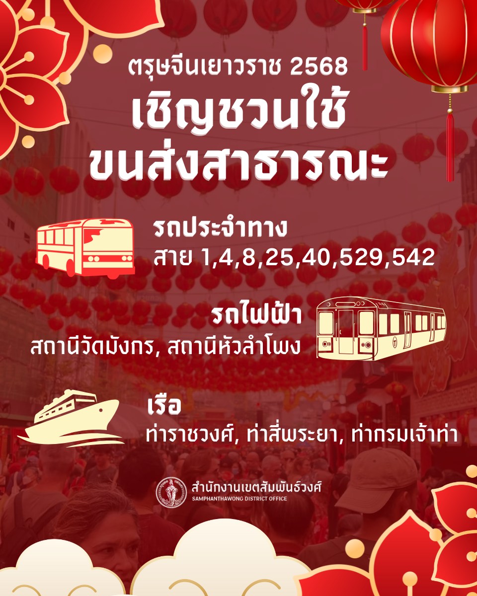 เขตสัมพันธวงศ์ ชวนใช้ขนส่งสาธารณะเที่ยวงานตรุษจีนเยาวราช 29 - 30 ม.ค. นี้