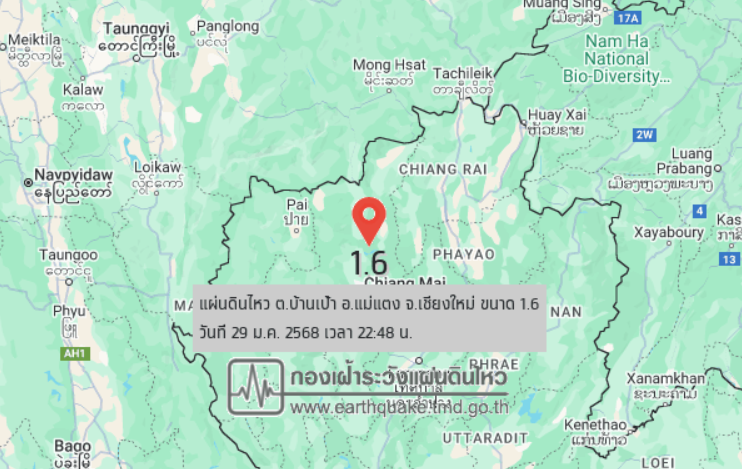 แผ่นดินไหว ขนาด 1.6 ที่แม่แตง จังหวัดเชียงใหม่