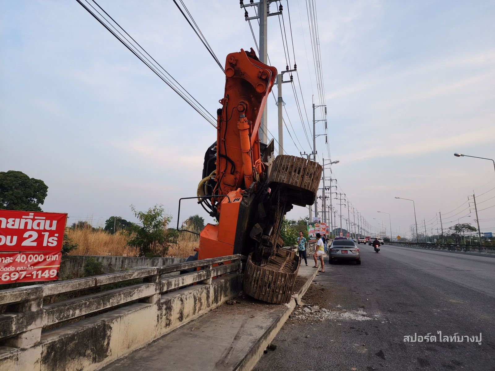 06.58 น. ถนนตำหรุ-บางพลี ขาออก ตรงข้ามวัดตำหรุ จ.สมุทรปราการ รถบรรทุก ทำรถเครนที่บรรทุกมาตกหล่น ไม่ได้กีดขวางการจราจร เพราะอยู่บนราวสะพาน #รายงานจราจร #อุบัติเหตุ #FM91