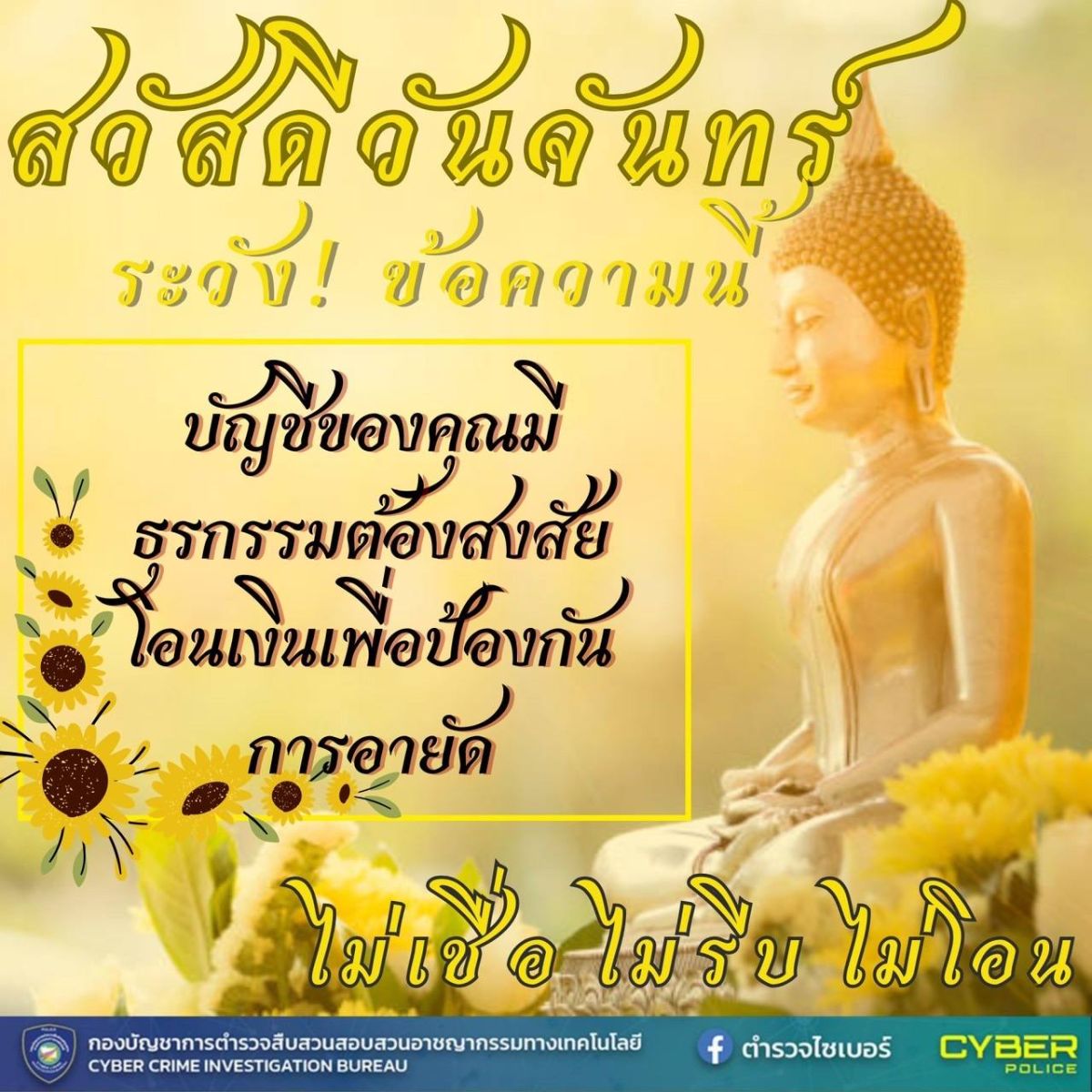 เพื่อให้พี่น้องประชาชน มีภูมิคุ้มกันภัยออนไลน์ ลดความเสี่ยงจากการถูกหลอกลวง ด้วยข้อมูลที่เข้าถึงง่ายและน่าจดจำ เพื่อให้ประชาชนได้เข้าถึงง่ายจึงมีการขุดไอเดียดังกล่าวเพื่อเป็น การเผยแพร่ ให้เข้าถึงคนทุกช่วงวัย เช่น "สวัสดีวันจันทร์ ระวังภัย โดยมีการใส่ข้อความ เช่น บัญชีของคุณมีธุรกรรมต้องสงสัยโอนเงินเพื่อป้องกันการอายัด" ไม่เชื่อไม่รีบไม่โอน