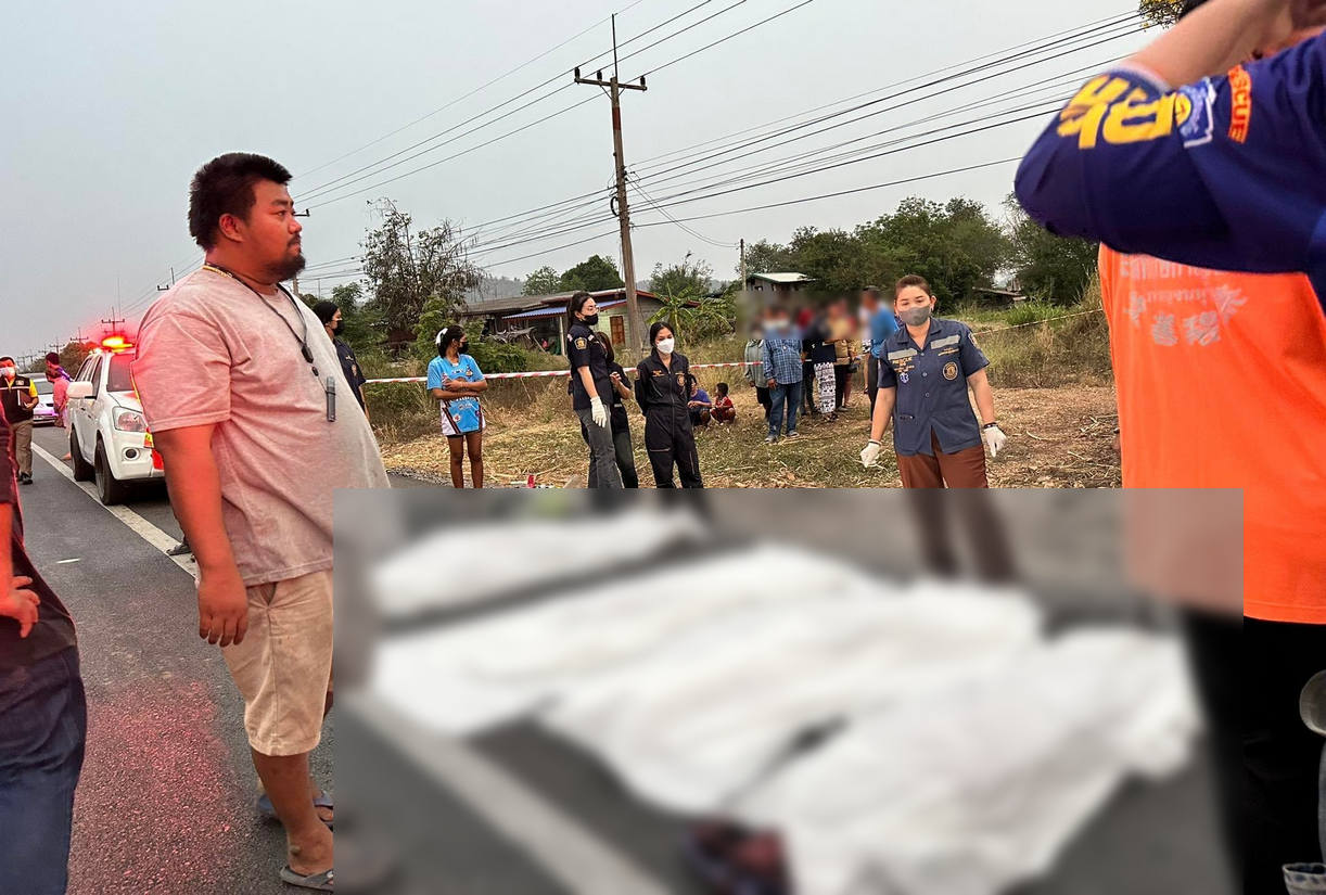 ตาขับขี่รถซาเล้งพ่วงข้าง พายาย-หลานไปบ้านเพื่อน ถูกกระบะชนเสียชีวิต 4 ศพ จ.สุพรรณบุรี