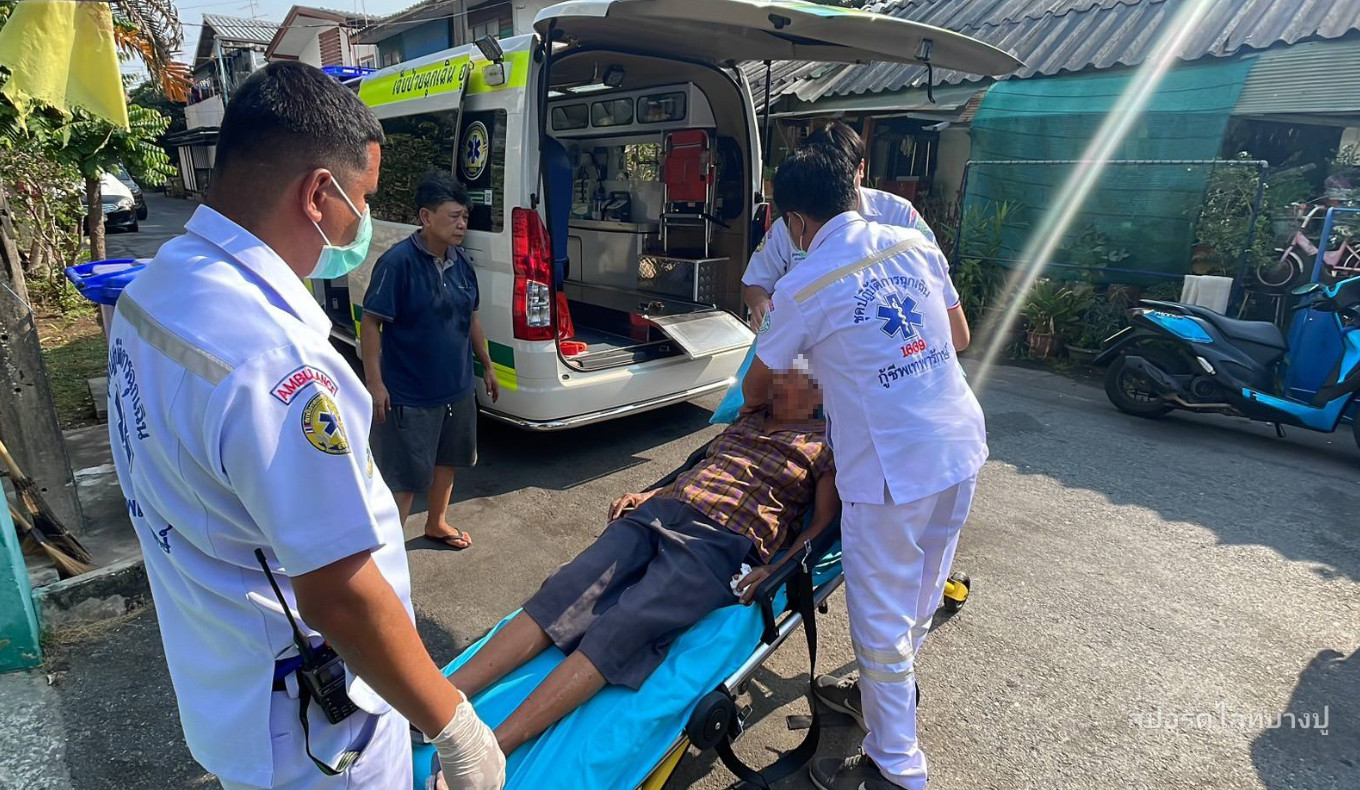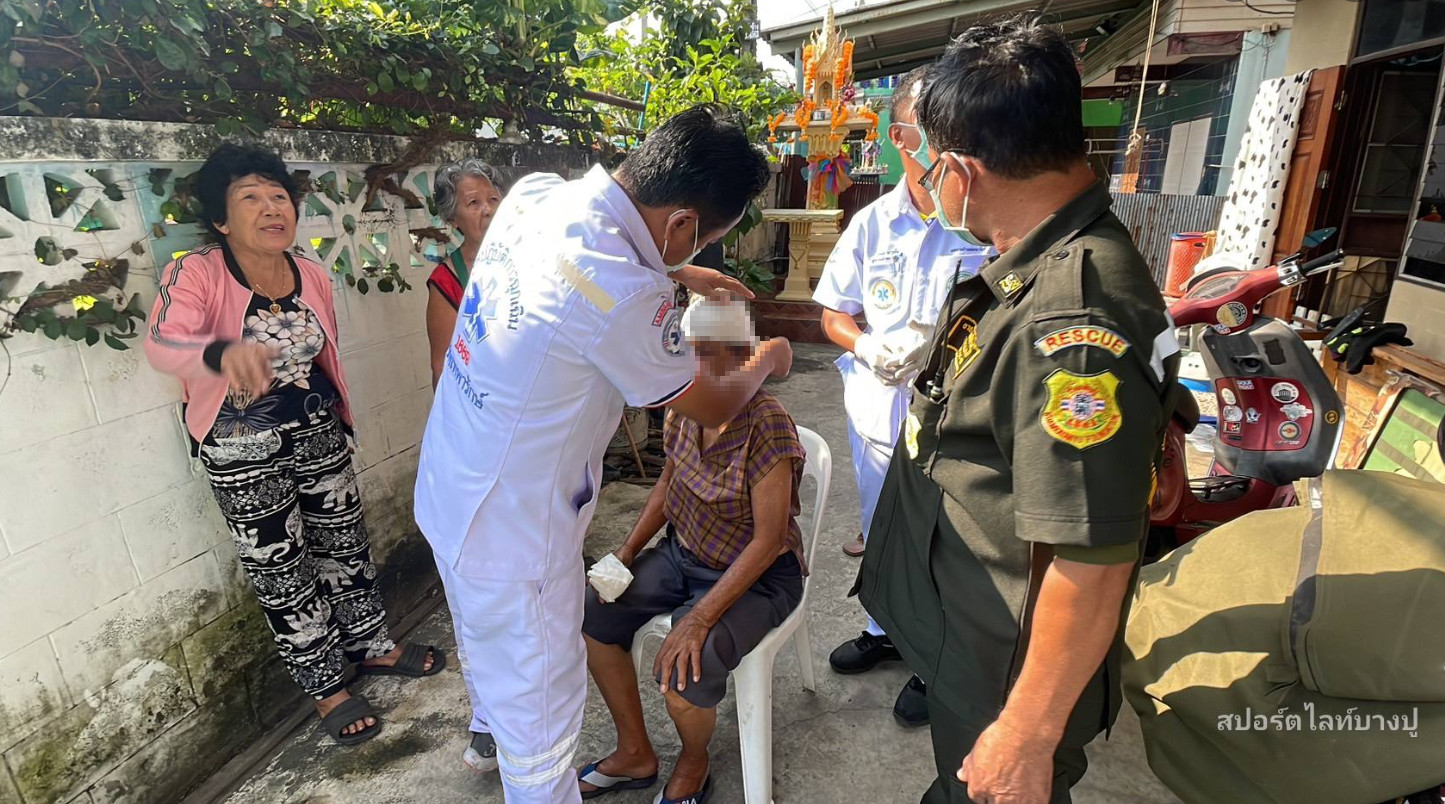ด้านเพื่อนบ้านได้ยินเสียงดัง จึงออกมาดูก็ได้พบคุณยายถูกประตูเหล็กกดทับทั้งตัว จึงรีบตะโกนให้ชาวบ้านใกล้เคียงมาช่วยกันยกประตู และได้ช่วยแจ้ง1669 ให้เข้าช่วยเหลือคุณยาย จากการตรวจสอบพบมีแผลแตกที่ศีรษะ และมีรอบซ้ำตามตัวจากการถูกประตูเหล็กทับ จึงได้นำร่างผู้บาดเจ็บส่งโรงพยาบาลสมุทรปราการ