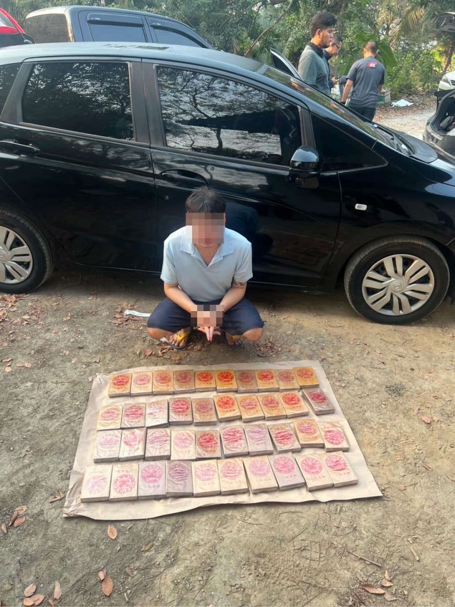 ต่อมาในวันที่ 3 ก.พ. 2568 เจ้าหน้าที่ตำรวจรับแจ้งจากสายลับว่าผู้ต้องหาจะเดินทางไปรับยาเสพติดในเวลากลางคืน เจ้าหน้าที่ตำรวจจึงเดินทางมาเฝ้าดูพฤติกรรมของเป้าหมาย ต่อมาในวันที่ 4 ก.พ.2568 เวลาประมาณ 00.30 น. พบผู้ต้องหาขับรถยนต์ออกจากบ้าน โดยมุ่งหน้าไปยังบริเวณถนนคลองหลวง จอดรถระหว่างทาง ก่อนขับรถมุ่งหน้ากลับไปยังบริเวณ ต.คลองจินดา เจ้าหน้าที่ตำรวจชุดสะกดรอยติดตามเชื่อว่าเป้าหมายได้เดินทางไปเพื่อรับยาเสพติด จึงรายงานให้ผู้บังคับบัญชาทราบ และวางกำลังอยู่บริเวณโดยรอบเพิงพักไม่มีเลขที่ หมู่ 6 ต.คลองจินดา อ.สามพราน จ.นครปฐม