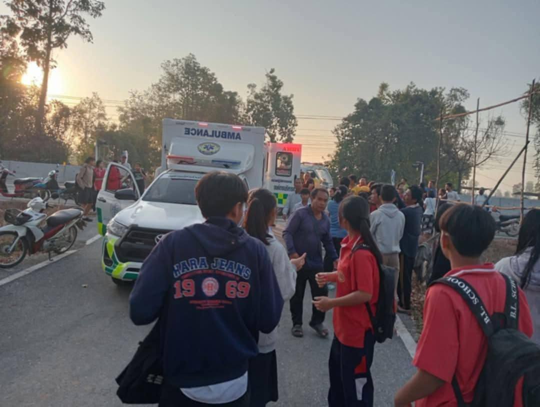 วันนี้ เวลาประมาณ 07.30 น. เจ้าหน้าที่ตำรวจ สภ.บ้านด่านลานหอย จังหวัดสุโขทัย รับแจ้งอุบัติเหตุ รถกระบะคอก ชนท้ายรถนักเรียนพลิกคว่ำ ที่เกิดเหตุบริเวณหน้าวัดหนองหญ้าปล้อง ตำบลหนองหญ้าปล้อง อำเภอบ้านด่านลานหอย จังหวัดสุโขทัย เจ้าหน้าที่ตำรวจ และเจ้าหน้าที่กู้ชีพกู้ภัย เร่งเข้าช่วยเหลือผู้บาดเจ็บ และเข้าตรวจสอบในพื้นที่เกิดเหตุ