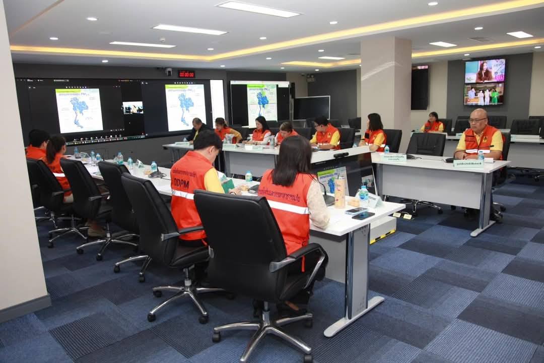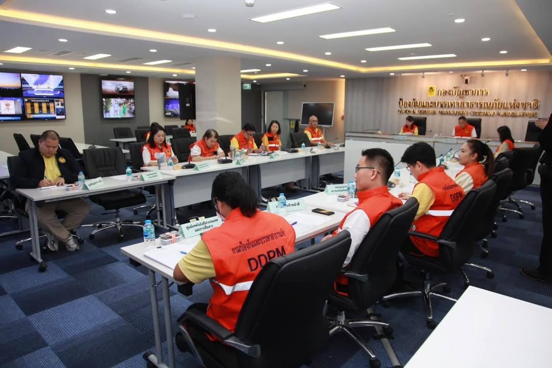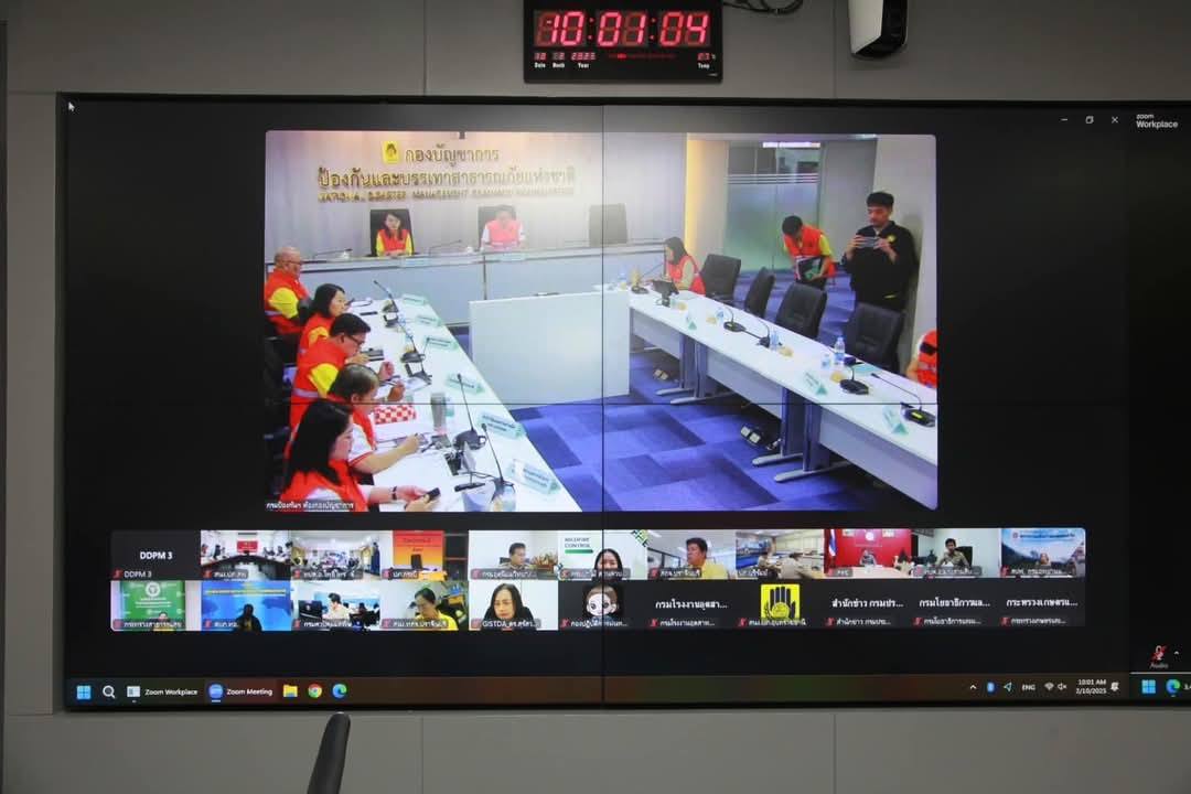 วันนี้ (10 ก.พ. 68) เวลา 10.00 น. ณ ห้องกองบัญชาการป้องกันและบรรเทาสาธารณภัยแห่งชาติ (บกปภ.ช.) อาคาร 3 ชั้น 5 กรมป้องกันและบรรเทาสาธารณภัยจัดประชุมกองบัญชาการป้องกันและบรรเทาสาธารณภัยแห่งชาติ เพื่อติดตามสถานการณ์และการแก้ไขปัญหาไฟป่า หมอกควัน และฝุ่นละอองขนาดเล็ก (PM2.5) โดยมีผู้บริหาร ปภ. และผู้แทนหน่วยงานที่เกี่ยวข้องเข้าร่วมประชุมฯ ขอให้จังหวัดและหน่วยงานที่เกี่ยวข้องเฝ้าระวังสถานการณ์ฝุ่นในช่วงวันที่ 11 – 13 ก.พ. 68 อย่างใกล้ชิด พร้อมประชาสัมพันธ์ให้ประชาชนรับทราบสถานการณ์และการเตรียมการป้องกันฝุ่นในห้วงดังกล่าว ตลอดจนเน้นย้ำจังหวัดติดตามและตรวจสอบพื้นที่ที่มีค่าจุดความร้อนสูง เพื่อวิเคราะห์หาสาเหตุเพื่อนำมาสู่การแก้ไขปัญหาที่เหมาะสม