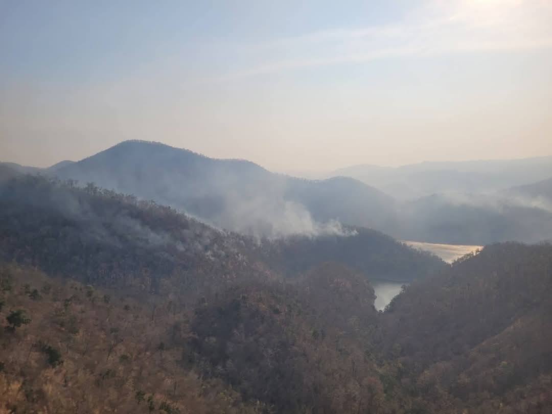ด้าน นายคุณากร บุญเกื้อสง หัวหน้าหน้าอุทยานแห่งชาติเขื่อนศรีนครินทร์ อำเภอศรีสวัสดิ์ จังหวัดกาญจนบุรี ได้รายงานสถานการณ์การดับไฟป่า ไปยังศูนย์สั่งการและติดตามสถานการณ์ไฟป่าและหมอกควันพื้นที่ป่าอนุรักษ์อุทยานแห่งชาติเขื่อนศรีนครินทร์ว่า ผลการปฏิบัติงานทางอากาศยาน ได้มีการนำเฮลิคอปเตอร์ทำการบินดับไฟป่า ที่เกิดขึ้นในพื้นที่ อุทยานฯเขื่อนศรีนครินทร์ อำเภอศรีสวันสดิ์ ซึ่งพื้นที่เกิดไฟป่าส่วนใหญ่เป็นพื้นที่เขาสูงชัน เจ้าหน้าที่ภาคพื้นดินไม่สามารถเดินทางเข้าปฏิบัติภารกิจได้สะดวก