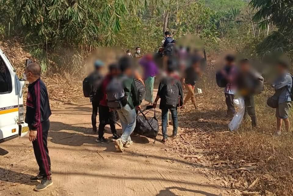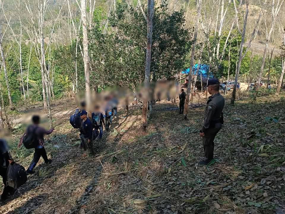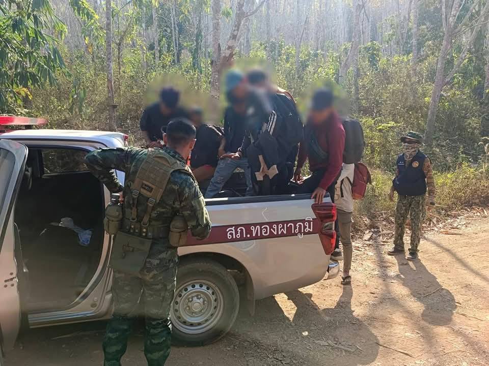 (11 ก.พ.2568) เวลาประมาณ 15.00 น. ตำรวจ สภ.ทองผาภูมิ รับแจ้งจากชาวบ้านว่ามีกลุ่มบุคคลต่างด้าวหลบหนีเข้าเมืองรวมกลุ่มเป็นจำนวนมาก บริเวณสวนยางไม่มีเลขที่ บ้านอู่ล่อง หมู่ที่ 4 ต.ท่าขนุน อ.ทองผาภูมิ จ.กาญจนบุรี จึงเดินทางไปตรวจสอบร่วมกับทหาร