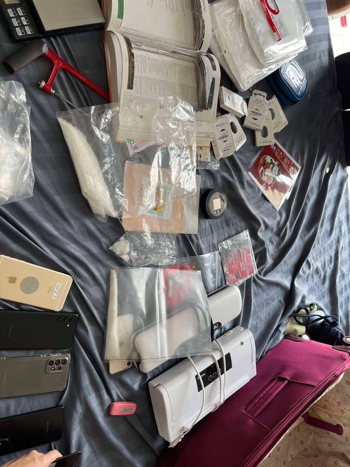 โดยขณะจับกุมได้ตรวจค้นภายในห้องพักพบยาไอซ์กว่า 150 กรัม ซุกซ่อนอยู่ภายในห้องนอน อีกทั้งยัง พบอุปกรณ์โทรศัพท์มือถือ เครื่องสัญญาณ GPS ขนาดเล็ก และอุปกรณ์สำหรับแบ่งจำนวนยาอีกเป็นจำนวนมาก พบของกลางที่ใช้ในการซุกซ่อนยาเสพติด เช่น หนังสือที่เจาะช่องลับตรงกลางเพื่อซุกซ่อนยาเสพติด และส่งเป็นพัสดุจากประเทศไทยส่งไปประเทศเกาหลีใต้ จากการตรวจหนังสือเดินทางยังพบว่า Overstay จึงได้ ร่วมกับเจ้าหน้าที่ ป.ป.ส. จับกุม ชายสัญชาติเกาหลีใต้ อายุ 51 ปี