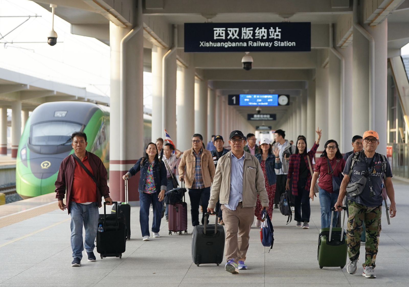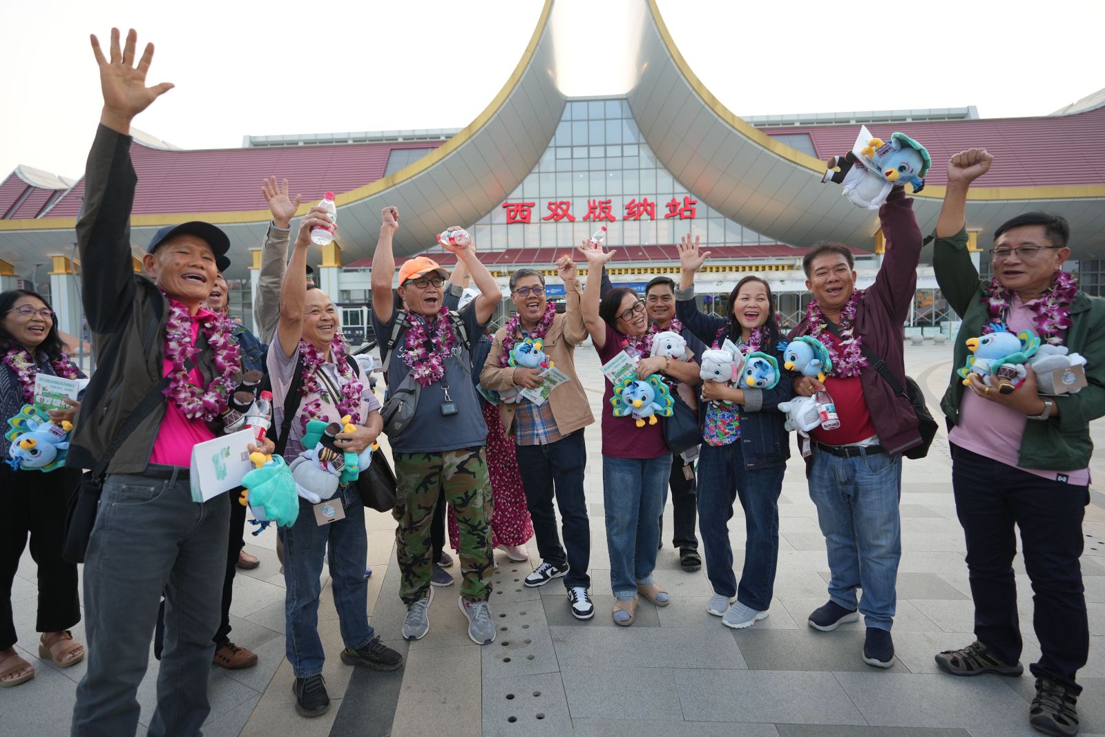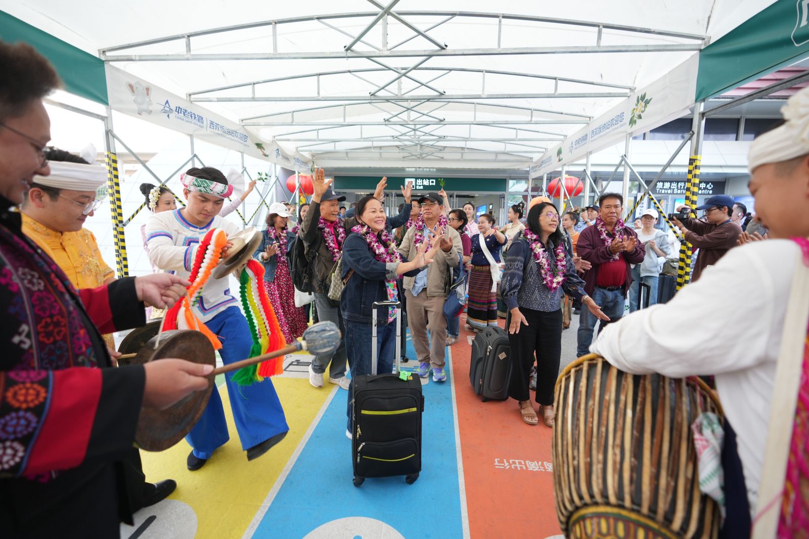 คุนหมิง, 19 ก.พ. ซินหัว รายงานว่า -- เมื่อเย็นวันอังคาร (18 ก.พ.) นักท่องเที่ยวแบบหมู่คณะหรือกรุ๊ปทัวร์จากไทยและลาวจำนวน 15 คน ออกจากสถานีรถไฟสิบสองปันนาของทางรถไฟจีน-ลาว ในแคว้นปกครองตนเองสิบสองปันนา กลุ่มชาติพันธุ์ไท มณฑลอวิ๋นหนาน (ยูนนาน) ทางตะวันตกเฉียงใต้ของจีน พร้อมรับการต้อนรับด้วยพิธีสาดน้ำและการแสดงร่ายรำชวนครื้นเครง
