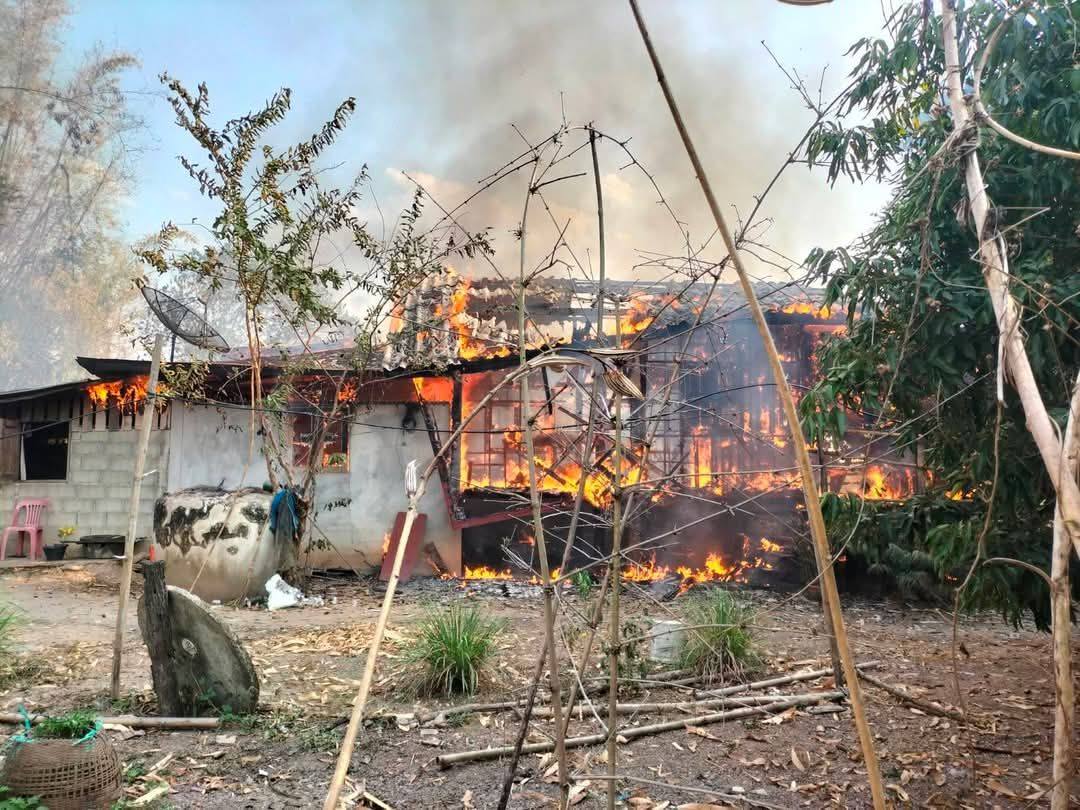 ไฟไหม้บ้านเสียหายวอด แล้วลุกลามบ้านหลังข้างเคียงที่เป็นของผู้พิการ เคราะห์ดีที่ไม่มีใครอยู่ในบ้าน คาดไฟฟ้าลัดวงจร จ.พะเยา