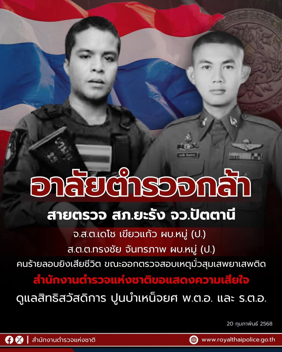 อาลัย 2 ตำรวจสายตรวจ สภ.ยะรัง จว ปัตตานี ถูกคนร้ายลอบยิงเสียชีวิตขณะปฏิบัติหน้าที่