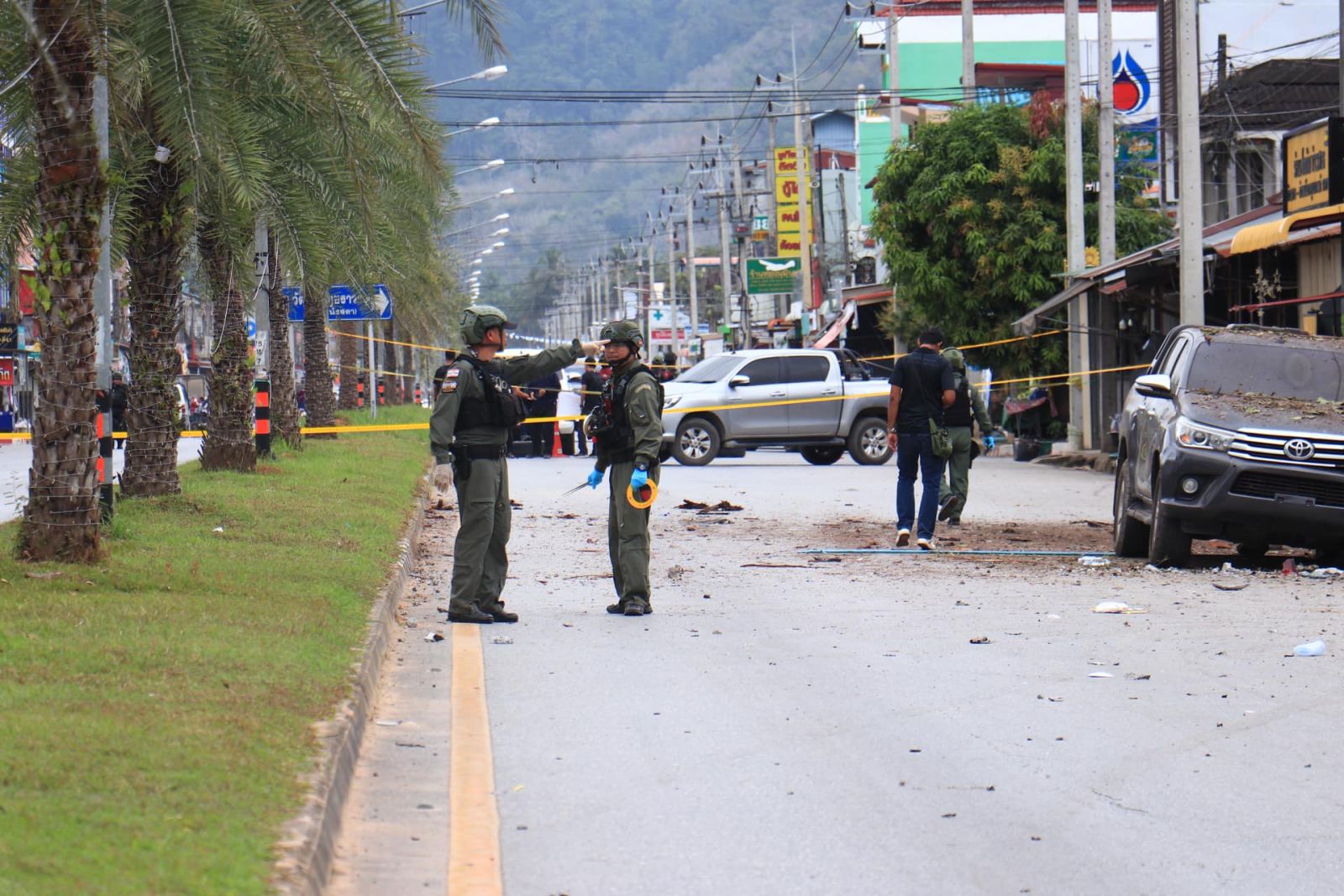 EOD ลงพื้นที่ เหตุคนร้ายลอบวางระเบิด หน้าร้านสะดวกซื้อในบันนังสตา ตำรวจเจ็บ 7 นาย ชาวบ้านเจ็บนับสิบราย และมีผู้เสียชีวิต จ.ยะลา