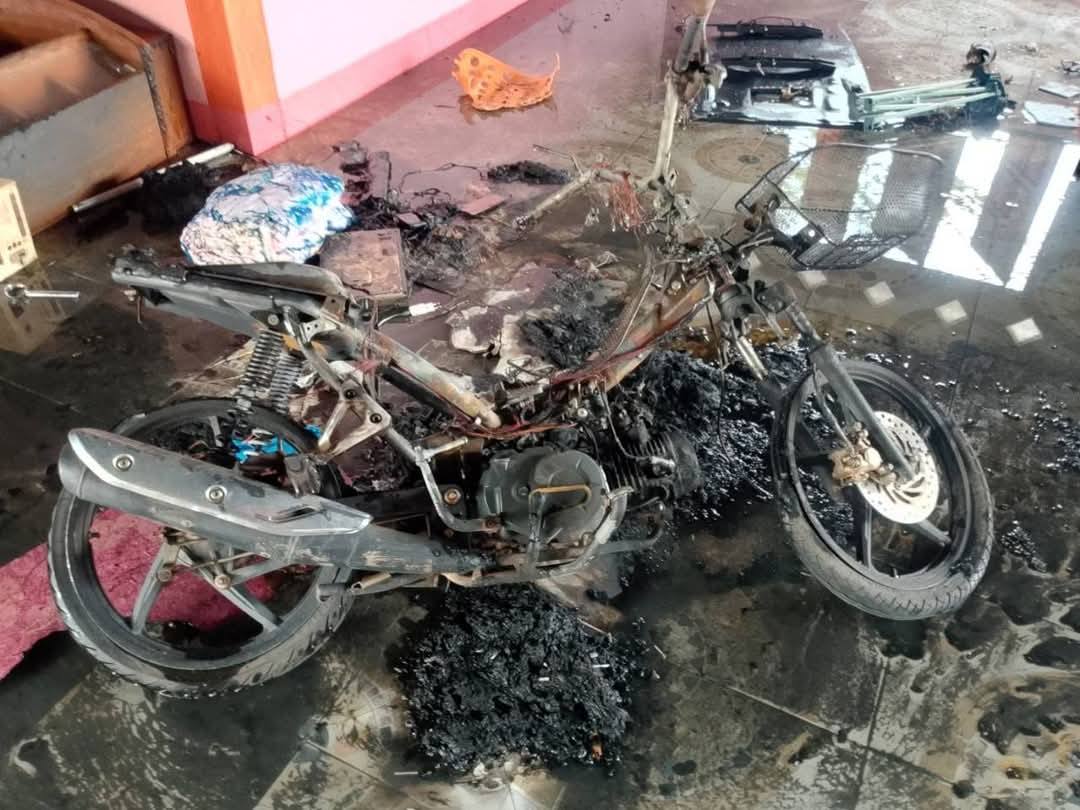 ที่เกิดเหตุ พบว่าเป็นลักษณะไฟไหม้ภายในบ้านพักอาศัยชั้นเดียว 1 หลัง และ รถจักรยานยนต์จำนวน 1 คัน ใช้เวลาในการระงับเหตุ 3 ชั่วโมงเพลิงจึงสงบ