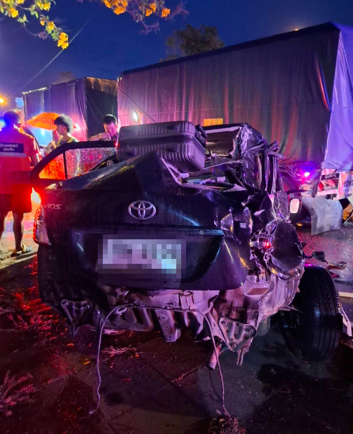ส่วนคนขับรถพ่วง เป็นชายอายุ 39 ปี ซึ่งยืนรออยู่ในจุดเกิดเหตุ คนขับรถพ่วง ให้การว่า กำลังเดินทางไปส่งสินค้า ขณะขับอยู่เลนซ้าย ท่ามกลางฝนตกลงมา จู่ๆก็ต้องตกใจถูกกระแทกอย่างแรงที่ด้านท้าย จึงรีบพยุงรถเข้าจอดริมถนน แล้วลงจากรถมาดู พบรถเก๋งและคนติดภายใน จึงรีบแจ้งเจ้าหน้าที่ทันที เสียใจต่อครอบครัวผู้เสียชีวิต