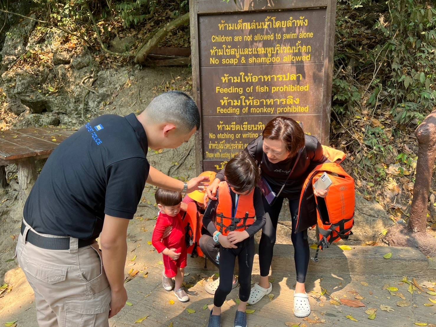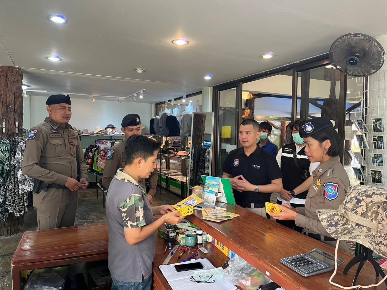 พ.ต.ต.ธนภัทร ทองไพบูลย์ สารวัตรสถานีตำรวจท่องเที่ยวกาญจนบุรี พร้อมกำลังเจ้าหน้าที่ตำรวจท่องเที่ยว ลงพื้นที่ตรวจสอบความปลอดภัย พร้อมให้คำแนะนำกับนักท่องเที่ยวทั้งชาวไทยและชาวต่างชาติ ที่เดินทางมาท่องเที่ยวที่อุทยานแห่งชาติเอราวัณหรือน้ำตกเอราวัณและเขื่อนศรีนครินทร์จังหวัดกาญจนบุรี แบบวันเดย์ทริป พร้อมตรวจเยี่ยมผู้ประกอบการร้านค้าและกำชับคนขับรถประจำทางสายกาญจนบุรี-เอราวัณ ให้มีความพร้อมทั้งคนขับและรถที่ให้บริการนักท่องเที่ยว เพื่อความปลอดภัยและป้องกันอุบัติเหตุที่อาจจะเกิดขึ้นได้