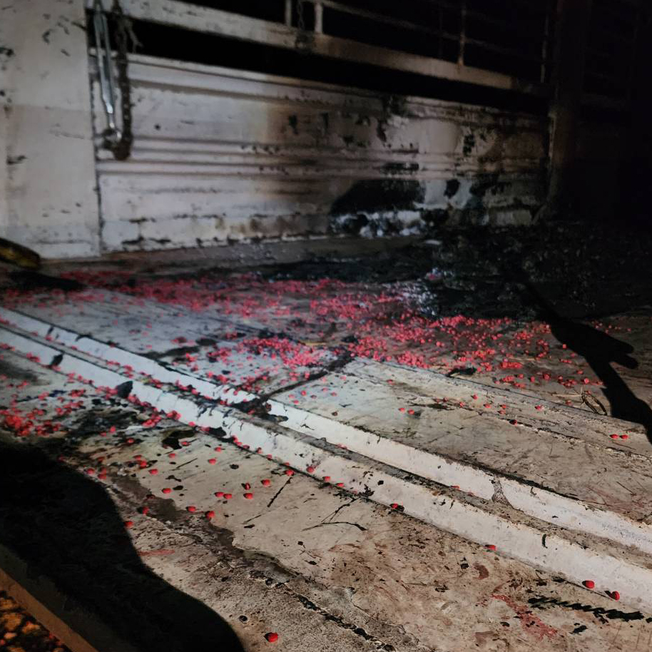 โดยเจ้าหน้าที่ บช.ปส.ได้ขึ้นไปดับไฟ บริเวณท้ายรถ ผลจากการตรวจสอบเบื้องต้น พบ ยาเสพติด (ยาบ้าหรือเมทแอมเฟตามีน) ถูกเผา และหลงเหลือตกลงพื้น ประมาณ 30,000 เม็ด เมื่อสามารถดับไฟได้ จึงได้ประสานพนักงานสอบสวนเข้าตรวจสอบที่เกิดเหตุ