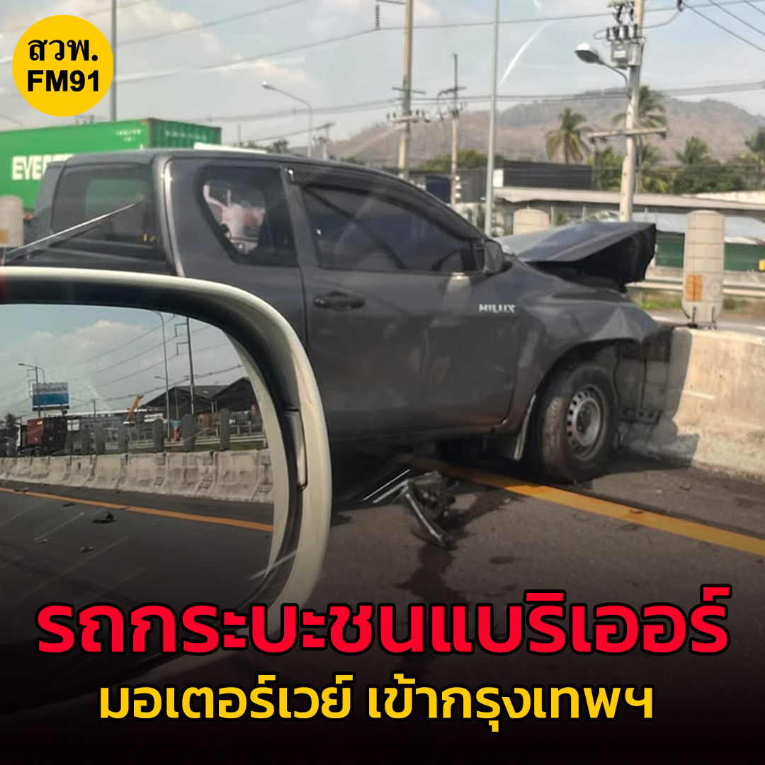 รถกระบะชนแท่งแบริเออร์ กีดขวางเลนขวา อยู่ระหว่างเคลื่อนย้าย ท้ายสะสม 1 กม.