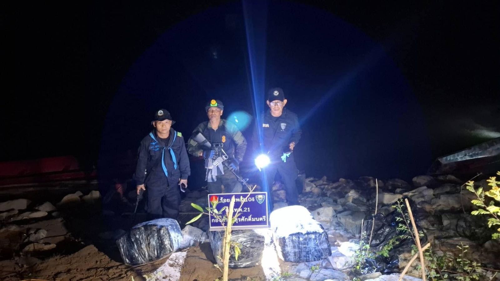 เจ้าหน้าที่จึงแสดงตัวขอตรวจค้น เมื่อกลุ่มบุคคลดังกล่าวเห็นเป็นเจ้าหน้าที่ จึงได้อาศัยความมืดวิ่งหลบหนีขึ้นฝั่ง 1 คน ก่อนขับรถจักรยานยนต์ออกไป และอีก 2 คน ที่มากับเรือ ได้กระโดดลงน้ำว่ายข้ามกลับไปฝั่ง สปป.ลาว