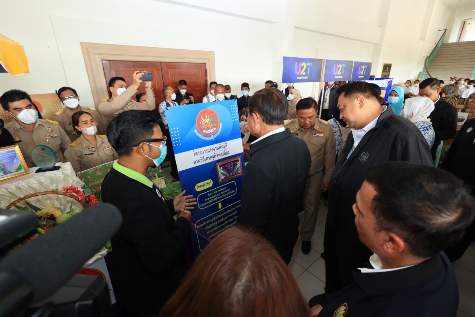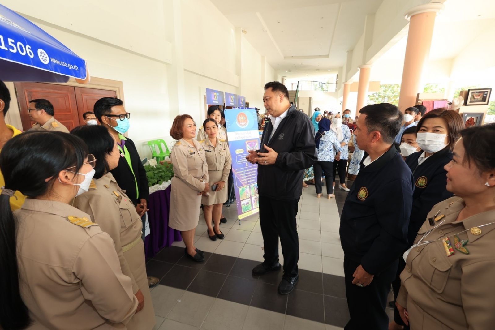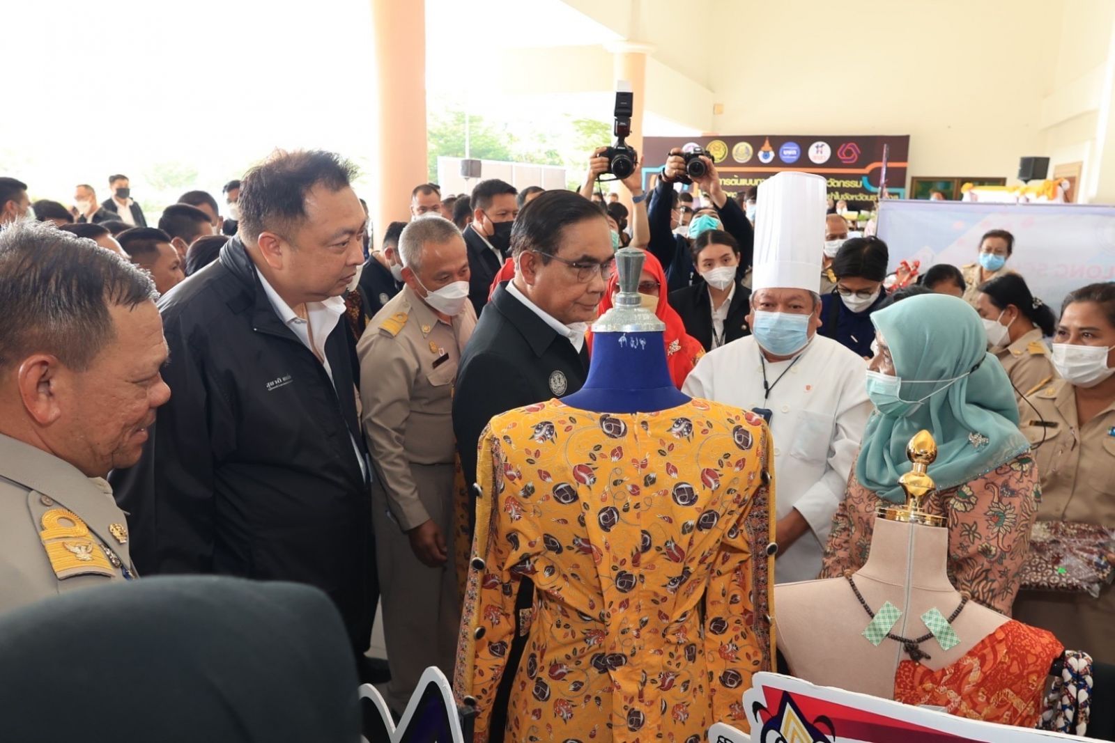 โอกาสเดียวกันนี้ รมว.สุชาติ ยังได้นำ นายกรัฐมนตรี เยี่ยมชมบูธของหน่วยงานในสังกัดกระทรวงแรงงานจังหวัดนราธิวาส โดยได้พบปะให้กำลังใจกับสมาชิกกลุ่มอาชีพที่มาจัดแสดงผลงาน จำนวน 2 กลุ่ม กลุ่มแรกเป็นกลุ่มสตรีสานเสื่อกระจูดบ้านโคกพะยอม มีสมาชิก 20 คน กลุ่มนี้ได้รับการสนับสนุนจากสำนักงานแรงงานจังหวัดนราธิวาส ภายใต้โครงการแก้ไขปัญหาความเดือดร้อนด้านอาชีพ และกลุ่มที่ 2 เยี่ยมชมผลงานและกิจกรรมการฝึกอาชีพตามโครงการพัฒนาทักษะเฉพาะให้แก่แรงงานนอกระบบที่ถือบัตรสวัสดิการแห่งรัฐ ปี 2566 จำนวน 2 หลักสูตร ได้แก่ หลักสูตรการประกอบขนมอบ และหลักสูตรตัดเย็บเสื้อผ้าสตรี หลักสูตรละ 20 คน ระยะเวลาการฝึก 30 ชั่วโมง ดำเนินการฝึกโดยสถาบันพัฒนาฝีมือแรงงาน 25 นราธิวาส และเยี่ยมชมนิทรรศการโครงการแรงงานพันธุ์ดี ตามวิถีเศรษฐกิจพอเพียง ของบริษัทศรีตรัง แอโกรอินดัส จำกัด (มหาชน) สาขานราธิวาส ที่มาแสดงนิทรรศการผลการดำเนินงานและแสดงผลิตผลทางการเกษตร ซึ่งโครงการนี้เพื่อส่งเสริมให้นายจ้าง ลูกจ้างมีส่วนร่วมในการใช้ทรัพยากรธรรมชาติที่มีอยู่ให้เกิดประโยชน์เพิ่มมูลค่าทางเศรษฐกิจ สร้างรายได้ และลดภาระค่าใช้จ่ายในครัวเรือน ส่งเสริมให้ลูกจ้างสามารถพึ่งพาตนเองได้และมีคุณภาพชีวิตที่ดีอย่างยั่งยืน