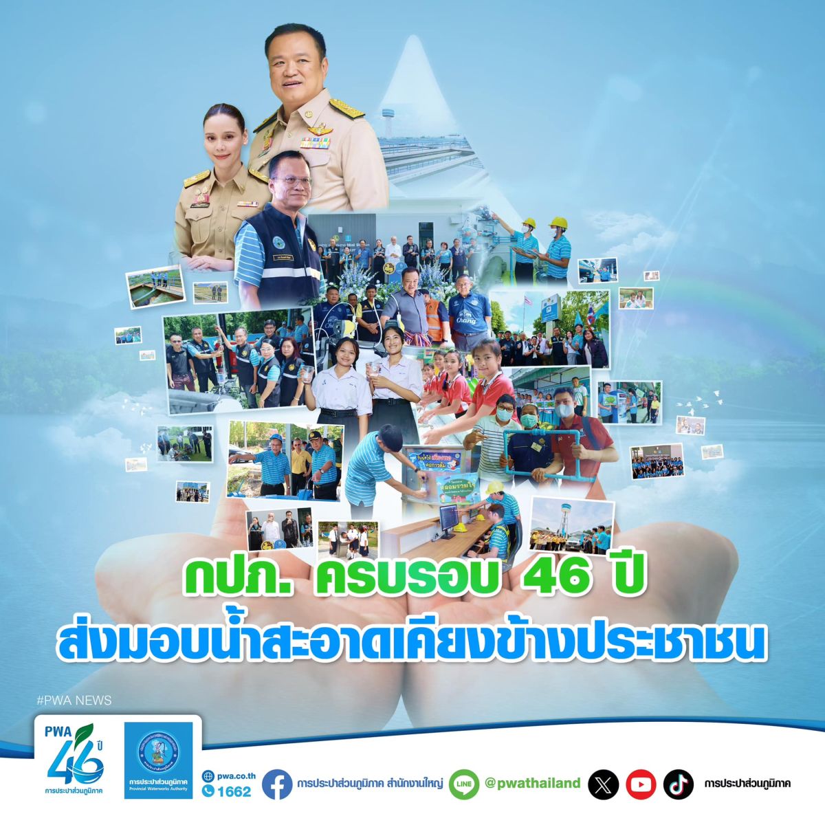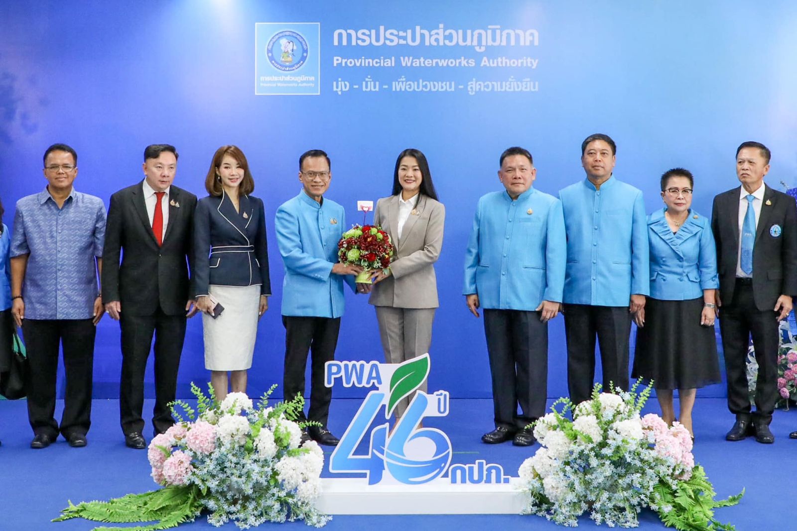 การประปาส่วนภูมิภาค (กปภ.) จัดงานเนื่องในวันสถาปนาครบรอบ 46 ปี ก้าวไปข้างหน้าอย่างมุ่งมั่นพัฒนาการให้บริการที่ใส่ใจส่งถึงทุกครัวเรือนอย่างไม่หยุดนิ่ง ขับเคลื่อนโยบายกระทรวงมหาดไทย "น้ำดื่มสะอาด บริการประชาชน" ขยายเขตพื้นที่ให้บริการ มอบอาชีพและสร้างรายได้ พร้อมใส่ใจสังคม ชุมชน และสิ่งแวดล้อม โดยมี นางสาวซาบีดา ไทยเศรษฐ์ รัฐมนตรีช่วยว่าการกระทรวงมหาดไทย (มท.3) และ นางสาวธีรรัตน์ สำเร็จวาณิชย์ รัฐมนตรีช่วยว่าการกระทรวงมหาดไทย (มท.4) มาร่วมแสดงความยินดี ในวันศุกร์ที่ 28 กุมภาพันธ์ 2568 ณ อาคารประปาวิวัฒน์ สำนักงานใหญ่ กปภ.