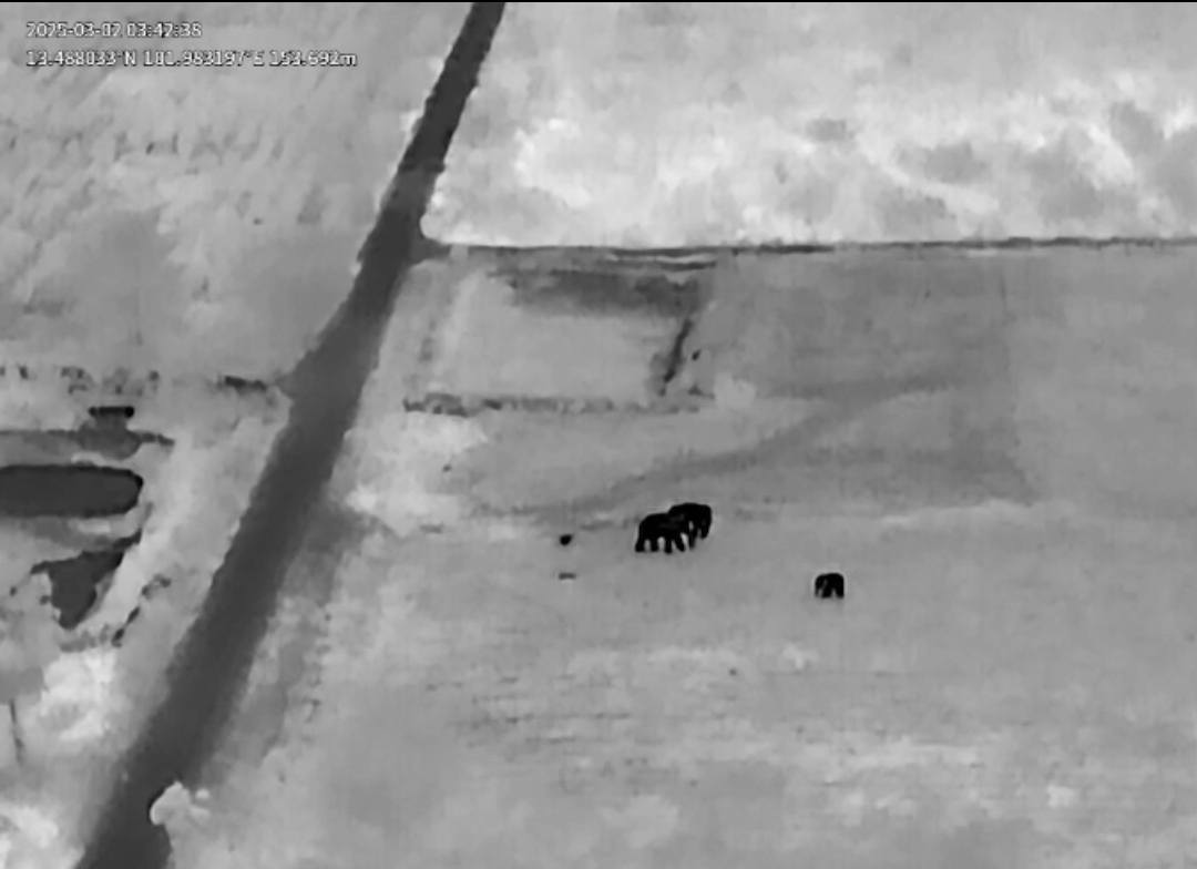นายเอกชัย แสนดี หัวหน้าเขตรักษาพันธุ์สัตว์ป่าเขาอ่างฤๅไน รายงานว่า เบื้องต้นพบลูกช้างอยู่ตัวเดียว เจ้าหน้าที่จึงทำการเฝ้าระวังและติดตามสังเกตอาการ พร้อมทั้งพยายามผลักดันเพื่อให้ลูกช้างกลับเข้าฝูง ในช่วงเวลากลางคืนจนเกือบสว่าง มีฝูงช้างป่าประมาณ 10 ตัวขึ้นไปเดินเข้ามาหาลูกช้าง แต่ลูกช้างไม่ยอมตามฝูงเข้าป่าจากการใช้โดรนติดตั้งกล้องตรวจจับความร้อน เจ้าหน้าที่พบว่าบริเวณดังกล่าวมีช้างป่าอาศัยอยู่ในพื้นที่ 2 ฝูง จึงสันนิษฐานว่าลูกช้างตัวดังกล่าวอาจมีแม่อยู่อีกฝูงหนึ่ง