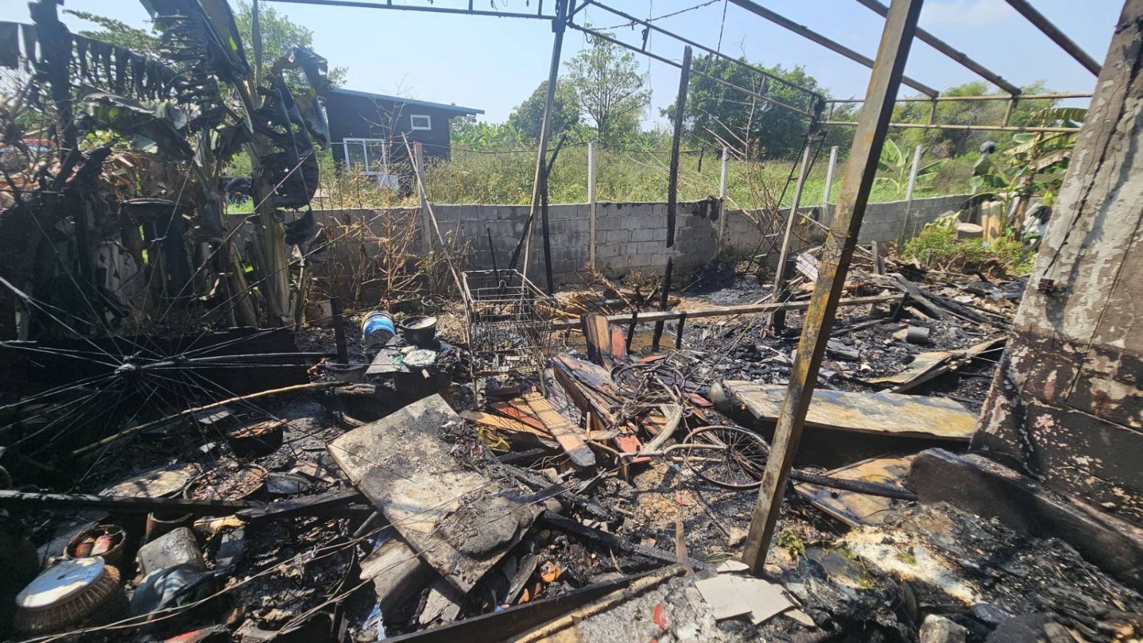 ลักษณะที่เกิดเหตุเป็นบ้านคอนกรีต 2 ชั้น ใช้เป็นที่พักอาศัย ต้นเพลิงเกิดขึ้นที่ชั้นล่าง ซึ่งเป็นส่วนต่อเติมเป็นโรงจอดรถ เพลิงลุกไหม้เสียหายโรงจอดรถลุกลามประตูหน้าต่าง และของใช้ภายในบ้าน พื้นที่เพลิงไหม้เสียหายโดยประมาณ 50 ตารางเมตร รถดับเพลิงใช้น้ำทำการดับเพลิงสงบ