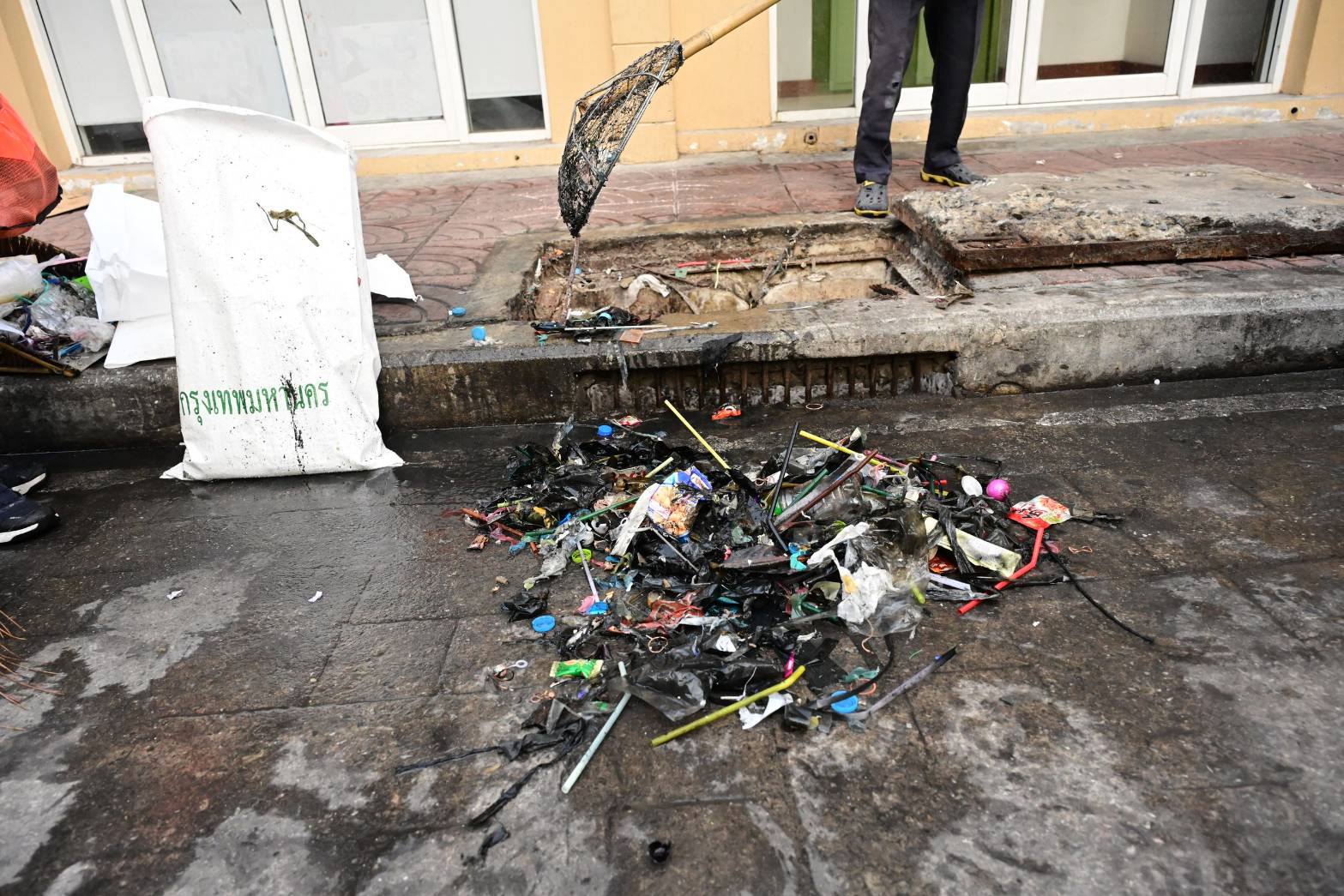 นอกจากนี้ ให้เขตฯ ตรวจสอบฝาบ่อพักน้ำบนพื้นที่ทางเท้า หากชำรุดเสียหายให้เปลี่ยนฝาใหม่ทดแทน รวมถึงเปิดฝาบ่อพักน้ำตรวจสอบภายในบ่อพักน้ำและการเชื่อมต่อของท่อระบายน้ำ ซึ่งพบว่ามีเศษขยะอุดตันเป็นจำนวนมาก ส่วนรางระบายน้ำซึ่งเดิมมีแผงค้าตั้งวางกีดขวางอยู่ ภายหลังจากเคลื่อนย้ายแผงค้าออกไป พบว่ามีเศษขยะอุดตันอยู่ในรางระบายน้ำเป็นจำนวนมากเช่นกัน ในเบื้องต้นเขตฯ ได้จัดเก็บขยะที่อุดตันในรางน้ำออกไป พร้อมทั้งตรวจสอบทิศทางการไหลของน้ำ โดยให้เขตฯ ประสานสำนักการระบายน้ำ ร่วมกันดำเนินการล้างทำความสะอาดท่อระบายน้ำถนนมหาจักรจนถึงถนนอนุวงศ์ โดยเริ่มดำเนินการในวันจันทร์ที่ 10 มีนาคมเป็นต้นไป จนกว่าจะแล้วเสร็จ