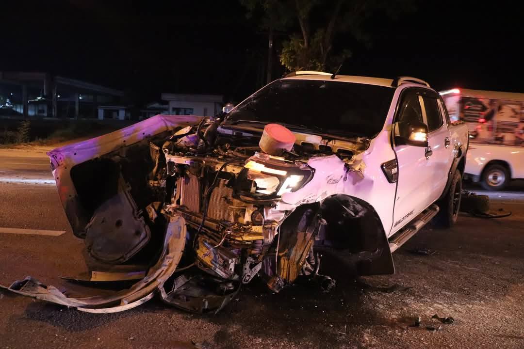ที่เกิดเหตุบริเวณจุดกลับรถหน้าสนามยิงปืนกำแพงเพชร ต.คลองแม่ลาย อ.เมืองกำแพงเพชร พบรถยนต์กระบะ 4 ประตู ยี่ห้อฟอร์ด เรนเจอร์ ไวล์ดแทรค สีขาว โดยใช้หมายเลขทะเบียนปลอมเป็นของจังหวัดสุโขทัย และจังหวัดอื่นๆ อีกหลายแผ่น สภาพด้านหน้ารถพังยับเยิน ส่วนคนขับคือ ชาย อายุ 36 ปี ชาวจังหวัดเชียงใหม่ บาดเจ็บเล็กน้อยที่ข้อศอก เจ้าหน้าที่ตำรวจควบคุมตัวอยู่ในที่เกิดเหตุ