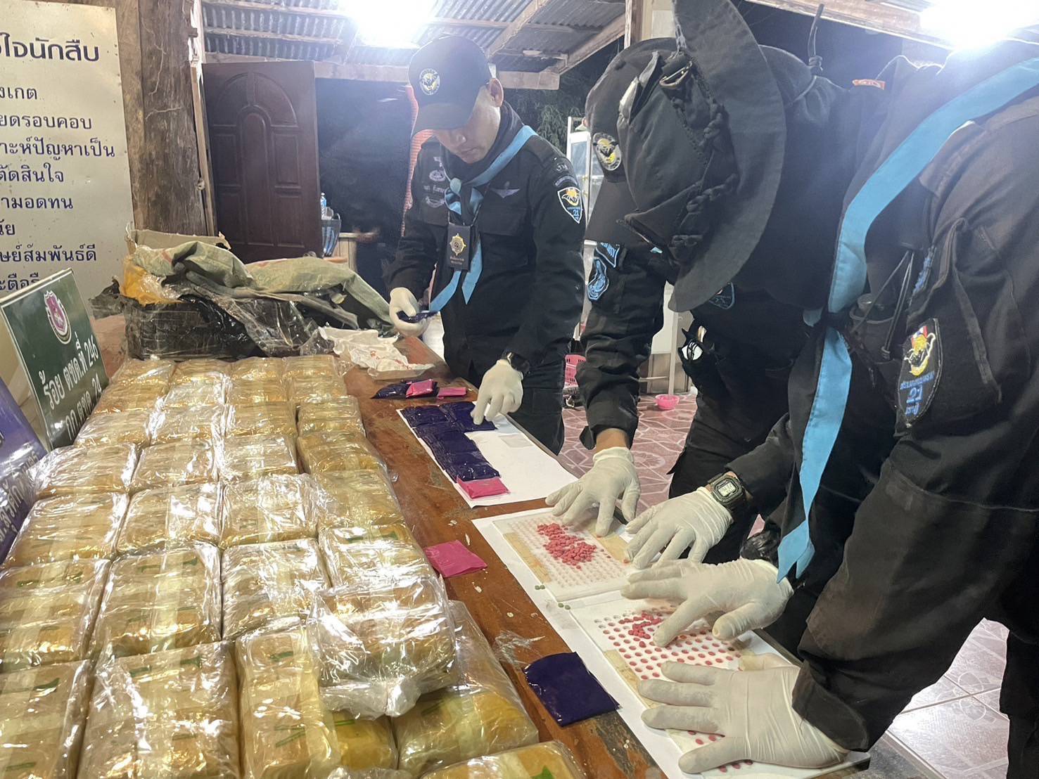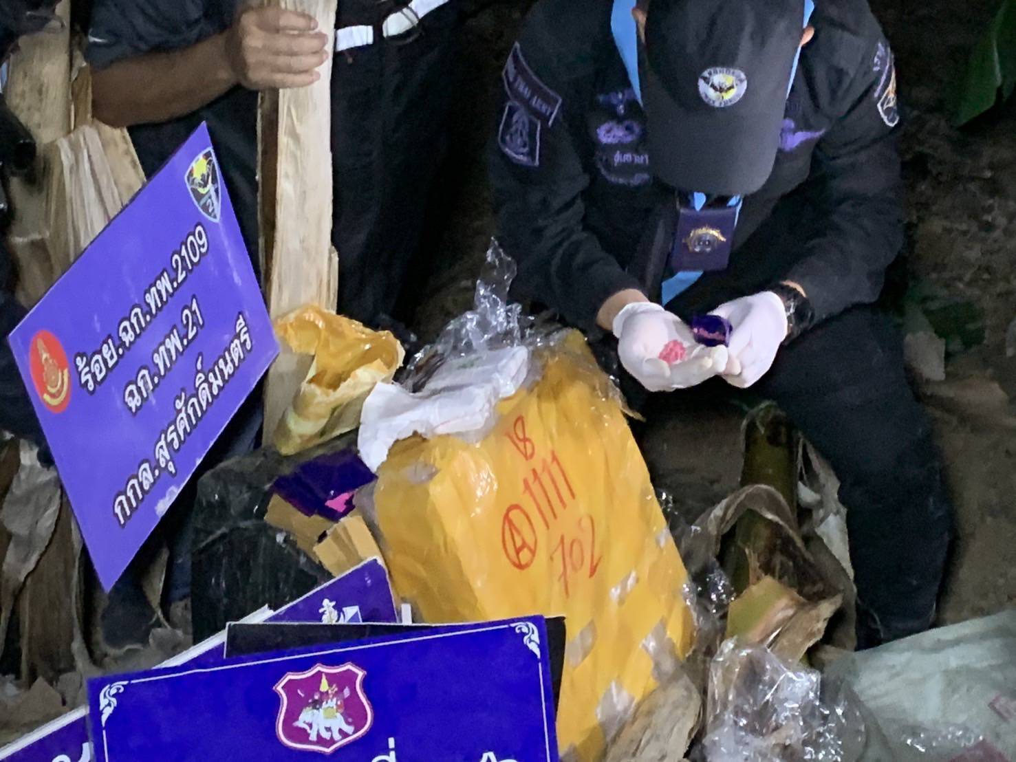 กระทั้งลาดตระเวนมาถึงบริเวณพื้นที่ บ้านห้วยขอบ ม.3 ต.หาดคัมภีร์ อ.ปากชม จ.เลย เจ้าหน้าที่ได้ตรวจพบวัตถุต้องสงสัยบริเวณบริเวณป่ากล้วยริมทาง จึงเข้าตรวจสอบพบเป็นยาเสพติด บรรจุในถุงดำปั่นผ้าเทปมิดชิดจึงได้ ทำการพิสูจน์ทราบ พบเป็น ยาบ้า จำนวน 200,000 เม็ด โดยไม่พบผู้ต้องหา คาดว่ากองทัพมด ที่ลำเลียงยาเสพติดมาจากประเทศเพื่อนบ้าน มาถึงบริเวณดังกล่าว เมื่อพบเห็นเจ้าที่ทหารออกลาดตระเวน จึงได้ทิ้งยาเสพติดไว้บริเวณดังกล่าว แล้วหลบหนีไป เจ้าหน้าที่จึงได้นำของกลางยาเสพติด(ยาบ้า) ส่งพนักงานสอบสวนสภ.ปากชม เพื่อดำเนินการตามกฎหมายต่อไป