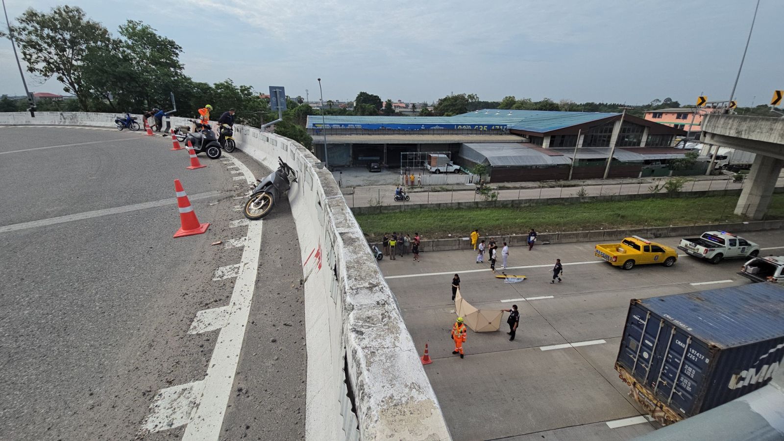 อุบัติเหตุ! มอเตอร์เวย์ (ทล.7) ตอนที่ 3 มุ่งหน้าเข้าแหลมฉบัง ช่วง กม.2+600 ในพื้นที่ต.สุรศักดิ์ อ.ศรีราชา จ.ชลบุรี รับแจ้งรถจักรยานยนต์ขึ้นไปใช้สะพานกลับรถ ก่อนเฉี่ยวชนขอบทาง ส่งผลให้ผู้ขับขี่ร่างกระเด็นลงมาพื้นราบ เสียชีวิตเป็นหญิง 1 ราย ยังกีดขวางเลนกลาง เจ้าหน้าที่กำลังเร่งดำเนินการ #รายงานจราจร #รถติด #อุบัติเหตุ #FM91