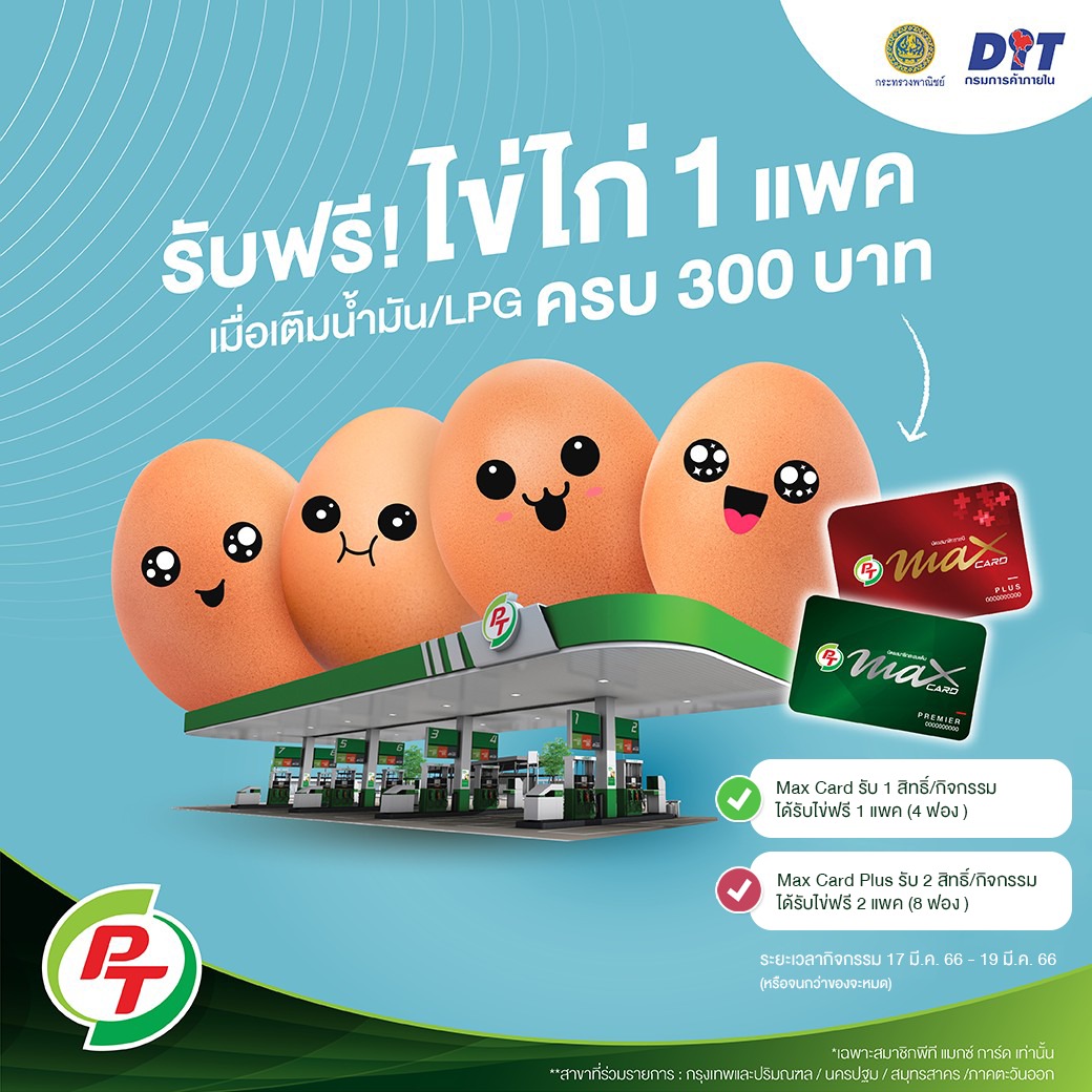 ที่สถานีบริการ PT ที่ร่วมรายการ ที่เราแจกไข่ไก่เพิ่ม เพราะเราอยากให้รู้ว่าคุณพิเศษ