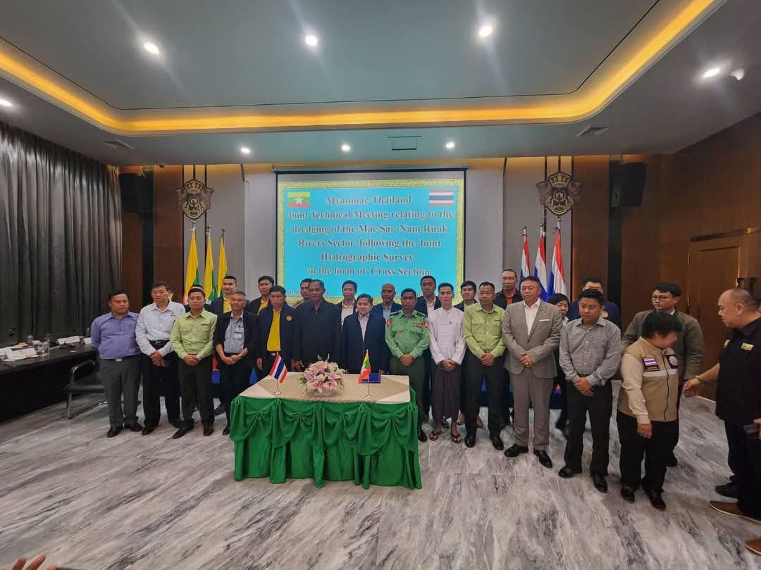ทางด้าน นายประสงค์ หล้าอ่อน รองผู้ว่าราชการจังหวัดเชียงราย นายวรายุทธ ค่อมบุญ นายอำเภอแม่สาย และคณะเดินทางไปประชุมร่วมกับฝ่าย จ.ท่าขี้เหล็ก ณ โรงแรมวันจีวัน โดยนายประสงค์เป็นประธานฝ่ายไทย และนายซอ วิน ผู้อำนวยการทรัพยากรน้ำและการพัฒนาระบบแม่น้ำ เป็นประธานฝ่ายเมียนมา ซึ่งทั้ง 2 ฝ่ายได้ร่วมกันประชุมและชี้แจงผลการสำรวจในการขุดลอกในแม่น้ำสาย - แม่น้ำรวก ที่ผ่านมา จากนั้นมีมติให้รายงานผลการประชุมไปยังคณะกรรมการร่วมไทย - เมียนมา เกี่ยวกับเส้นเขตแดนคงที่ช่วงแม่น้ำสาย - แม่น้ำรวก หรือ JCR เพื่อให้ความเห็นชอบในการดำเนินการขุดลอกในแม่น้ำสาย - แม่น้ำรวก อย่างเป็นรูปธรรมต่อไป ทั้งนี้จนถึงปัจจุบันยังไม่มีการขุดลอกแม่น้ำสาย-แม่น้ำรวก ขณะที่ก่อนหน้านี้ทั้ง 2 ฝ่ายหวังจะทำการขุดลอกให้แล้วเสร็จในเดือน พ.ค.2568 ก่อนฤดูฝนปีนี้