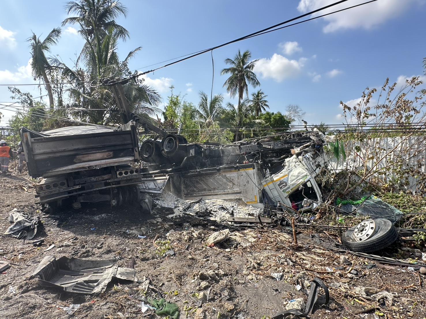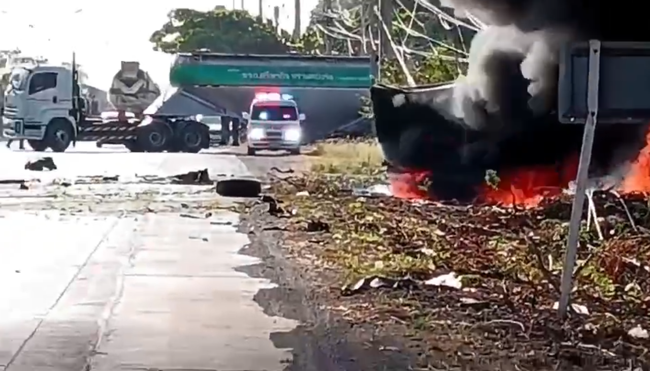 เกิดเหตุรถบรรทุกเสียหลักพุ่งข้ามเกาะชนกระบะ ดับ 3 ศพ พ่อ แม่ ลูก ก่อนรถตกข้างทางไฟลุกไหม้ ที่สระบุรี