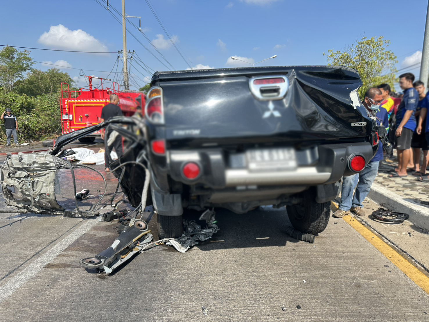 ตรวจสอบภายในรถกระบะพบผู้เสียชีวิต 3 ราย เป็นพ่อ แม่ ลูกกัน ขณะที่คนขับรถบรรทุกได้รับบาดเจ็บ 1 ราย ซึ่งเจ้าหน้าที่ได้เร่งดับไฟ และกู้ร่างผู้เสียชีวิตออกมาจากซากรถ ส่วนสาเหตุอยู่ระหว่างการสอบสวน