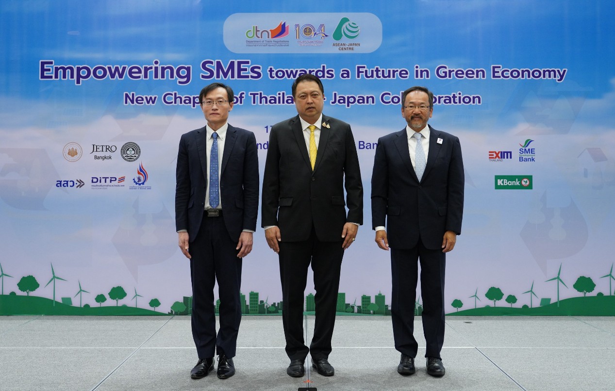 “ผมไม่อยากให้ผู้ประกอบการ เอ็สเอ็มอี มองเรื่องการค้าและสิ่งแวดล้อมในมุมตั้งรับและมองแต่ผลกระทบที่จะเกิดขึ้นกับภาคธุรกิจ แต่อยากให้มองเชิงรุกและเห็นถึงโอกาสทางธุรกิจใหม่ ๆ หาก เอ็สเอ็มอีสามารถปรับตัวตามกระแสการค้ายุคใหม่นี้ได้ โดยการจัดสัมมนาครั้งนี้ จะไม่เป็นเพียงการให้ข้อมูลความรู้เกี่ยวกับนโยบายและมาตรการทางการค้าที่เกี่ยวโยงกับประเด็นสิ่งแวดล้อม และเป้าหมายการลดการปล่อยก๊าซคาร์บอนของประเทศไทยและญี่ปุ่น เท่านั้น แต่ได้นำสถาบันการเงินเข้ามาช่วย เพราะการจะปรับเปลี่ยนโรงงานหรือการดำเนินธุรกิจใหม่ ๆ ให้เป็นธุรกิจสีเขียว จำเป็นต้องใช้เงินทุนในการดำเนินการ ทางกระทรวงพาณิชย์จึงนำสถาบันการเงินที่มีโครงการให้สินเชื่อสีเขียว หรือ Green Finance เข้ามาช่วยเหลือผู้ประกอบการ เอ็สเอ็มอี ที่มีความตั้งใจจะปรับเปลี่ยนธุรกิจด้วย ผมเชื่อมั่นว่า การสัมมนาวันนี้จะช่วยให้ เอ็สเอ็มอี ได้เตรียมความพร้อม รองรับปรับตัว และพัฒนาขีดความสามารถในการแข่งขันเพิ่มขึ้น ซึ่งจะช่วยขับเคลื่อนภาคเศรษฐกิจของประเทศไทยให้เติบโตเพิ่มขึ้นด้วย” นายสุชาติ กล่าว