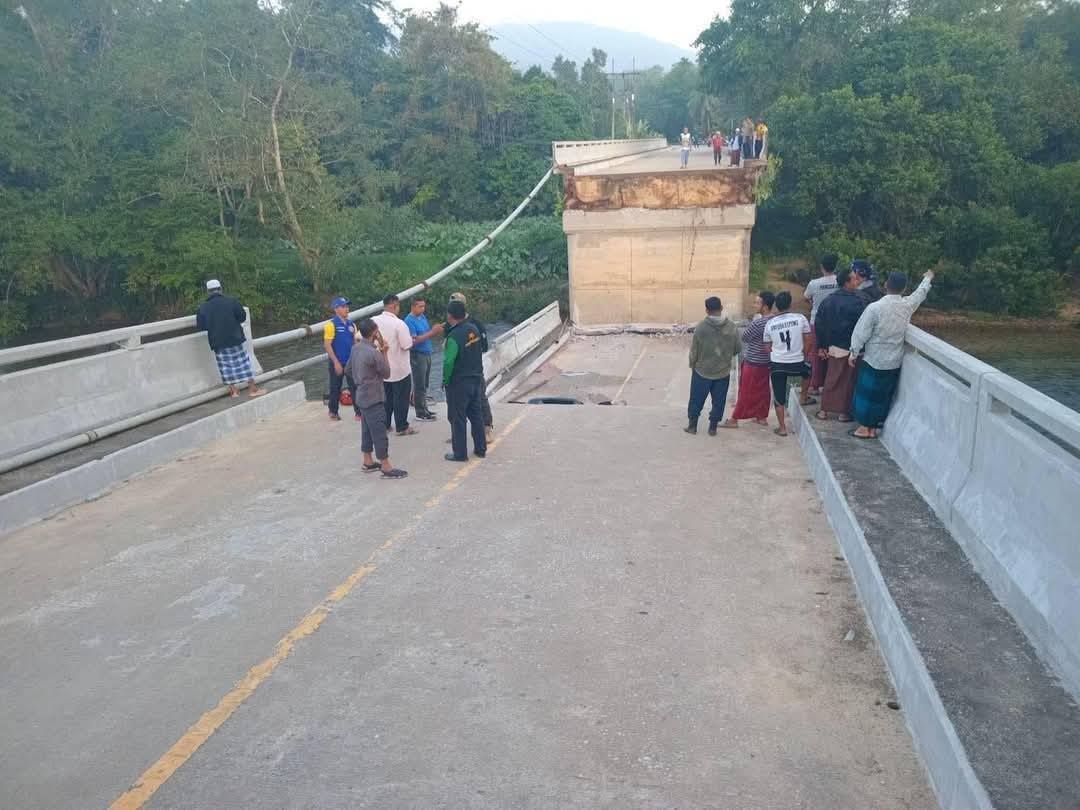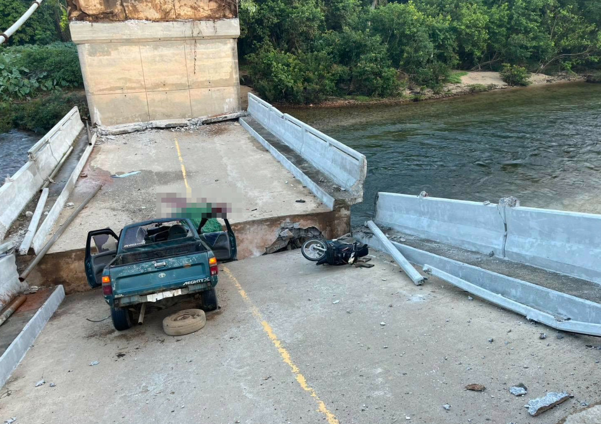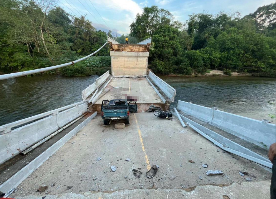เวลา 05.45 น. วันที่ 19 มี.ค.68 เส้นทางหลวงหมายเลข 4217 จะแนะ - ศรีสาคร บริเวณบ้านไอร์บือแต ต.ช้างเผือก อำเภอจะแนะ จังหวัดนราธิวาส เกิดเหตุสะพานพังถล่มลงมา ทำให้รถยนต์ และรถจักรยานยนต์ที่ใช้เส้นทางตกลงไป ส่งผลให้ผู้เสียชีวิต 1 ราย และบาดเจ็บอีก 3 ราย รายละเอียดเพิ่มเติมจะรายงานให้ทราบต่อไป