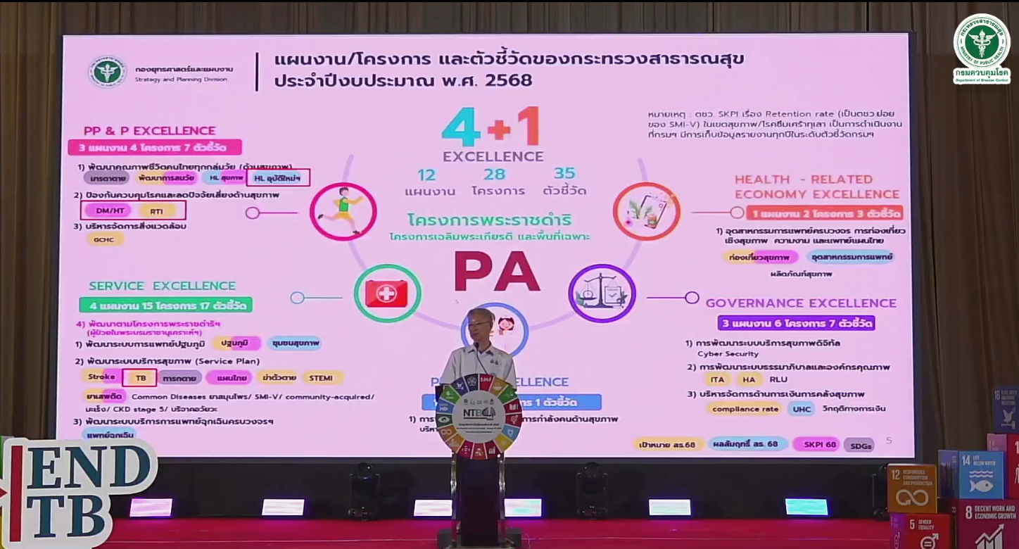 ทั้งนี้ มีการเน้นและให้ความสำคัญเชิงยุทธศาสตร์ คือ 1. การเร่งรัด การค้นหา และตรวจวินิจฉัยผู้ป่วยวัณโรคและผู้ป่วยวัณโรคดื้อยาในทุกกลุ่มเสี่ยง 2. ยกระดับการดูแลรักษาผู้ป่วยวัณโรคและผู้ป่วยวัณโรคดื้อยา 3. เพิ่มประสิทธิภาพการเข้าถึงการวินิจฉัย การรักษาการติดเชื้อวัณโรคระยะแฝง และการป้องกันการแพร่กระจายเชื้อ และ 4. เสริมสร้างความเข้มแข็งระบบสนับสนุนการดำเนินงานวัณโรค การจัดการประชุมวิชาการวัณโรคระดับชาติจึงเวทีสำคัญในการสนับสนุนให้ผู้ที่มีความสนใจได้เผยแพร่ผลงานวิจัย ผลงานนวัตกรรม และผลงานวิชาการอื่นๆ ที่เกี่ยวข้องกับวัณโรค