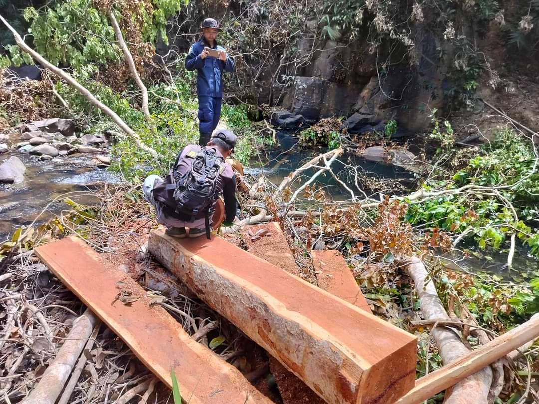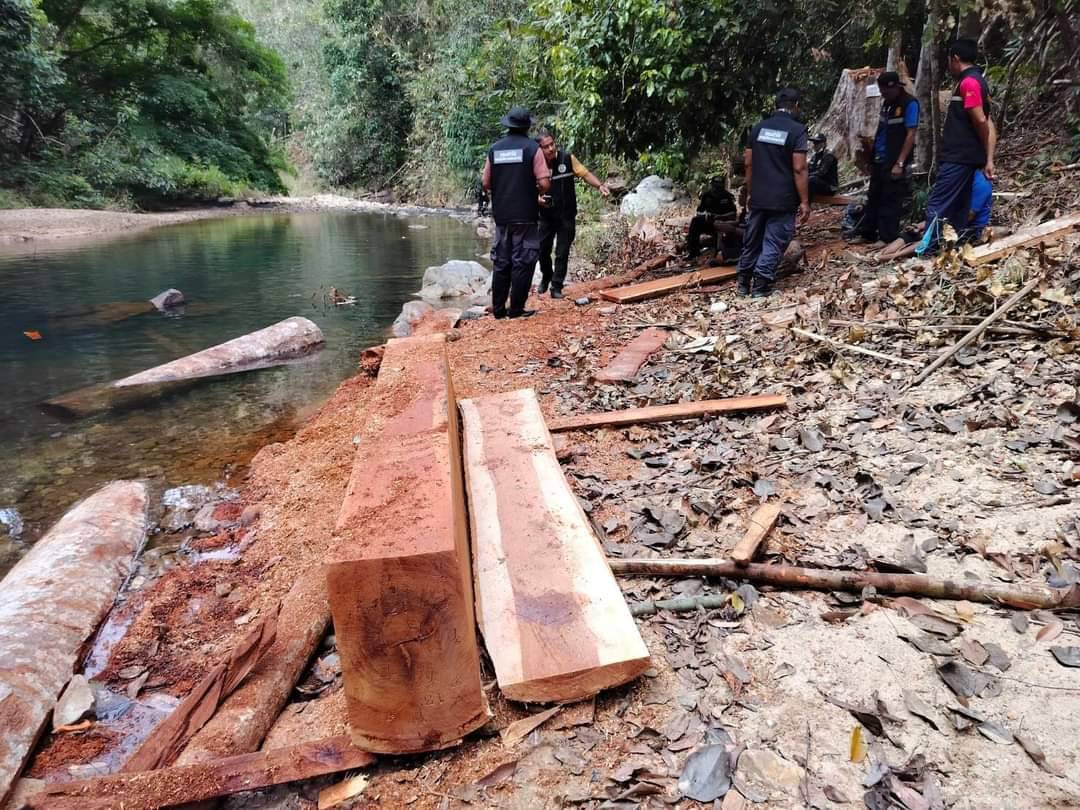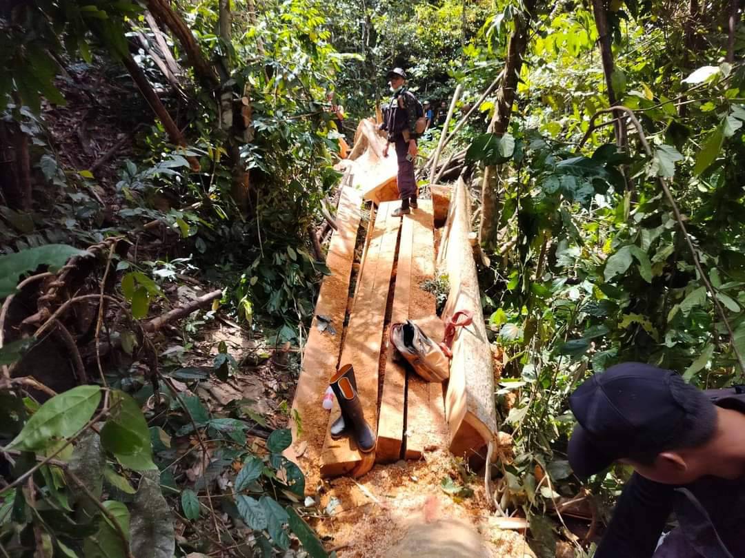 จึงทำการตรวจยึดไม้แปรรูป จำนวน 3 ชิ้น แผ่น ไม้ซีก จำนวน 1 ซีกและชิ้น ไม้ท่อน จำนวน 2 ท่อน ยังอยู่ที่เกิดเหตุ มีขนาดใหญ่ไม่สามารถบนย้ายได้ จนท.จะขออนุมัติดำเนินการต่อไป ขณะตรวจสอบไม่พบบุคคลใดแต่อย่างใด คาดว่าหลบหนีไปก่อน จนท.ไปถึง