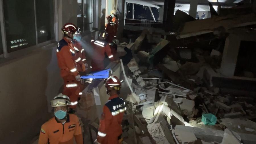 ขณะเดียวกัน ทีมกู้ภัยฯ รายงานว่าโรงพยาบาลซึ่งมี 3 ชั้น ที่พวกเขากำลังปฏิบัติงานช่วยเหลือนนั้น ได้รับความเสียหายอย่างหนัก โดยชั้นล่างสุดพังถล่มลงมาทั้งหมด และมีผู้คนจำนวนมากติดอยู่ใต้ซากอาคาร ซึ่งเจ้าหน้าที่กู้ภัยได้ใช้เครื่องตรวจจับสัญญาณชีพในการค้นหาผู้รอดชีวิตใต้ซากอาคารอย่างต่อเนื่อง