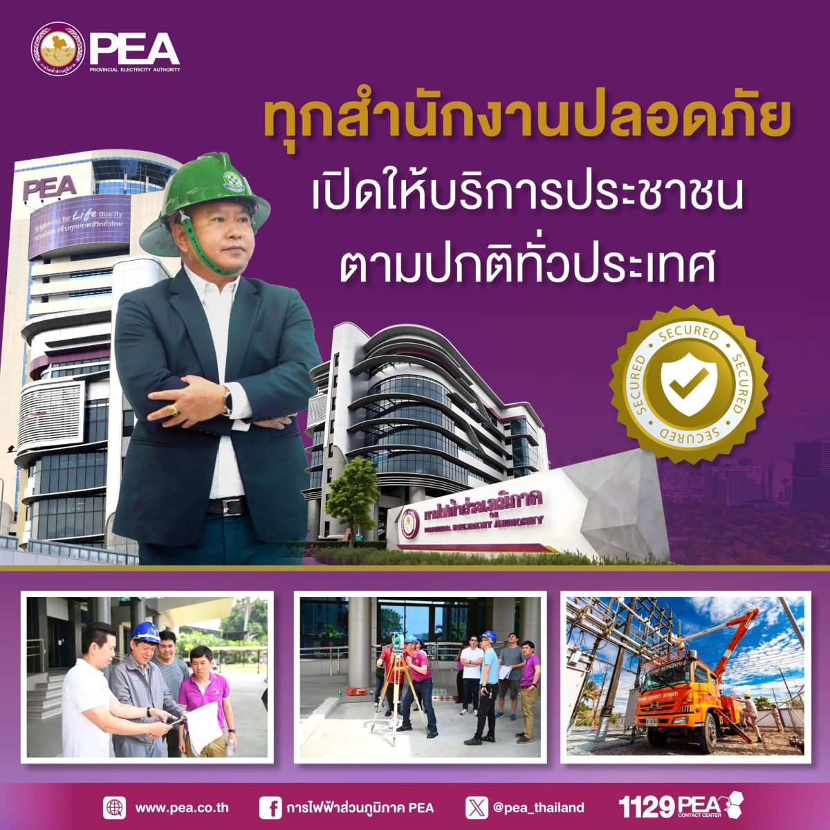 การไฟฟ้าส่วนภูมิภาค (PEA) ตรวจสอบความปลอดภัยทุกอาคารสำนักงานของ PEA โครงสร้างปลอดภัย ไม่กระทบต่อการปฏิบัติงาน และพร้อมให้บริการประชาชน