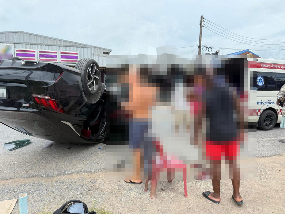 นทท.สาวชาวต่างชาติ ขับรถเก๋งเฉี่ยวชนรถที่จอดอยู่ริมทางแล้วพลิกคว่ำ ชาวบ้านแฉ เคยชนแล้วหนีมาแล้ว จ.ภูเก็ต