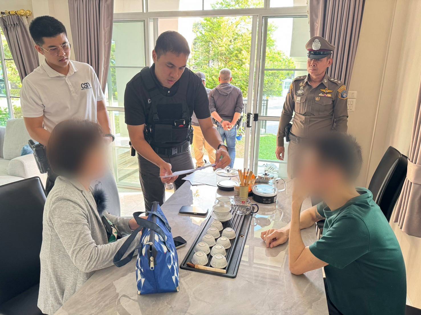 ต่อมา เจ้าหน้าที่ตำรวจ กก.1 บก.ป. นำหมายค้นของศาลอาญาธนบุรี ที่ 120/2568 ลงวันที่ 3 เมษายน 2568 เข้าตรวจค้นบ้านในหมู่บ้า สาทร-ราชพฤกษ์ แขวงบางจาก เขตภาษีเจริญ กรุงเทพมหานคร จนกระทั่งพบตัว นายจาง และ นาง Deng แสดงตนเป็นผู้พักอาศัยและผู้ครอบครองสถานที่ดังกล่าว เจ้าหน้าที่ตำรวจชุดจับกุม จึงได้แสดงหมายค้น พร้อมอ่านและได้ มีล่ามแปลคำอ่านของหมายค้นดังกล่าวให้กับ นายจาง และนาง Deng ทราบ และแสดงหมายจับเพื่อจับกุมตัว นายจาง ก่อนนำตัวผู้ร้ายข้ามแดนรายนี้ ส่งอัยการสูงสุด เพื่อดำเนินการตามกฎหมายต่อไป