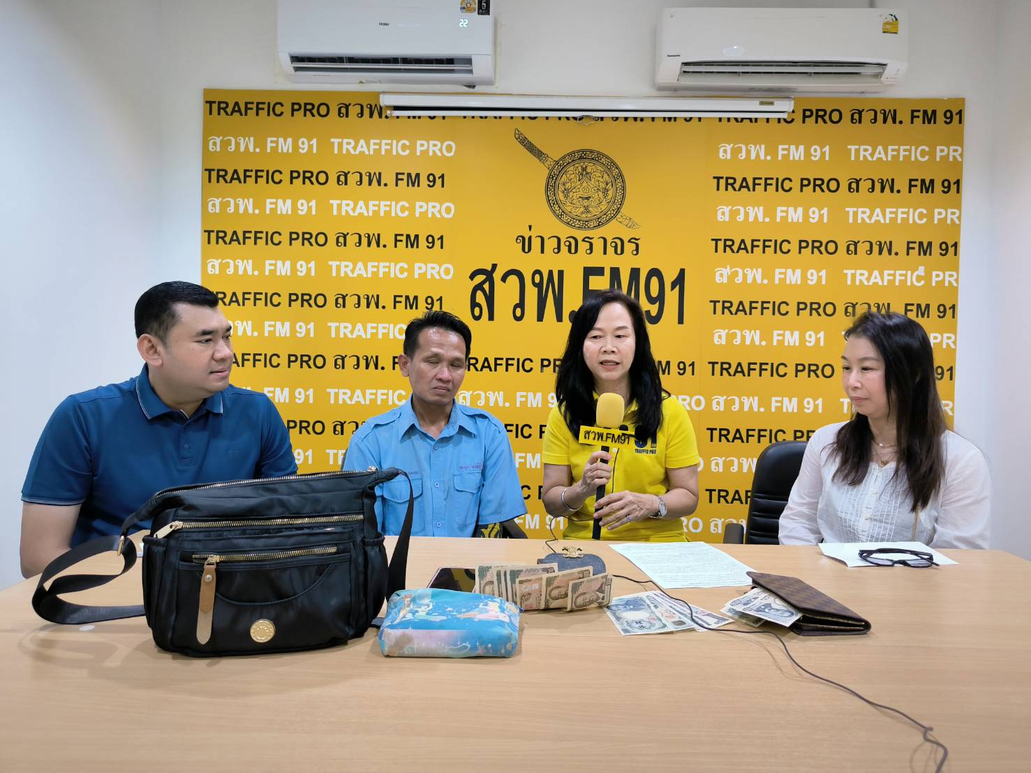 สืบเนื่องจากวันนี้ เวลาประมาณ 13.00 น. คุณณรงค์ พงษ์สำราญ ผู้ขับขี่รถแท็กซี่ สีชมพู ทห-9509 กทม. เดินทางเข้ามาที่ สถานีวิทยุ สวพ.FM91 ว่า พบกระเป๋าสะพายสีดำ ภายในมีกระเป๋าแบรนด์เนม 3 ใบ 1.กระเป๋าสตางค์ใบยาวหลุยส์ มีเงิน 16,000 เยน กระเป๋าสตางค์ใบเล็ก CILINE มีเงิน 80,000 เยน และบัตรต่างๆ เป็นภาษาญี่ปุ่น และกระเป๋าลายสีฟ้า มีเงิน 600,000 เยน สมุดบัญชีธนาคารญี่ปุ่น พาสปอร์ต ระบุชื่อ นาง สราวลี โทรศัพท์ไอโฟน สีดำ 1 เครื่อง หูฟัง เครื่องสำอางค์ รวมเงินสด 696,000 เยน คิดเป็นเงินไทย 164,643 บาท เมื่อเวลา 21.00 น. วันที่ 6 เมษายน 2568