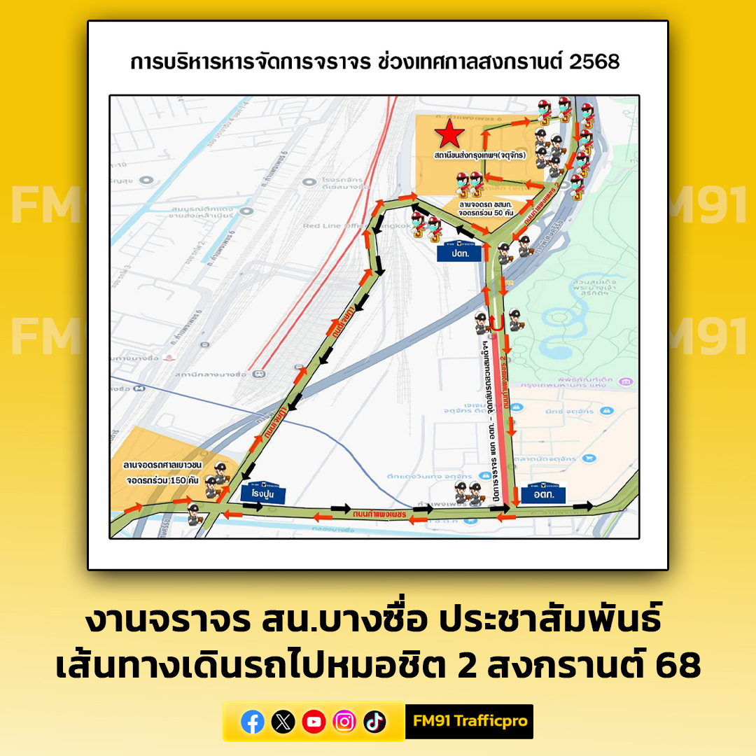 พล.ต.ต. ธวัช วงศ์สง่า รองผู้บัญชาการตำรวจนครบาล กล่าวว่า ในเทศกาลสงกรานต์ 2568 ที่จะถึงนี้ เป็นช่วงเวลาที่ประชาชนจะเดินทางกลับภูมิลำเนา และมาขึ้นรถโดยสารที่สถานีขนส่งฯ หมอชิต 2 และสถานีกลางกรุงเทพอภิวัฒน์เป็นจำนวนมาก ดังนั้นเพื่ออำนวยความสะดวกด้านการจราจรและความปลอดภัย จึงได้สั่งการให้เจ้าหน้าที่ตำรวจ และหน่วยงานที่เกี่ยวข้อง ตั้งศูนย์ประสานงานด้านการจราจร จำนวน 4 จุด บริเวณจุดกลับรถริมถนนกำแพงเพชร 2, ถนนกำแพงเพชร 6 จำนวน 3 จุด และสถานีขนส่งหมอชิต 2 จำนวน 1 จุด เพื่อบูรณาการร่วมกันระหว่างหน่วยงานที่เกี่ยวข้อง อาทิ ตำรวจ ทหาร บขส. ขสมก. ในการดูแลการเดินทางของประชาชน ให้ได้รับความสะดวก ปลอดภัย ลดปัญหาการจราจรที่ติดขัด และสามารถจัดการจรจาจรโดยรอบสถานีฯ และถนนกำแพงเพชร 2 และ 6 ให้เป็นระเบียบเรียบร้อย รวมทั้งให้เพิ่มกำลังเจ้าหน้าที่ เพื่อดูแลอำนวยความสะดวกประชาชนให้เกิดความปลอดภัยและสร้างความมั่นใจให้กับประชาชนที่ใช้ระบบขนส่งสาธารณะในการเดินทางช่วงเทศกาลสงกรานต์