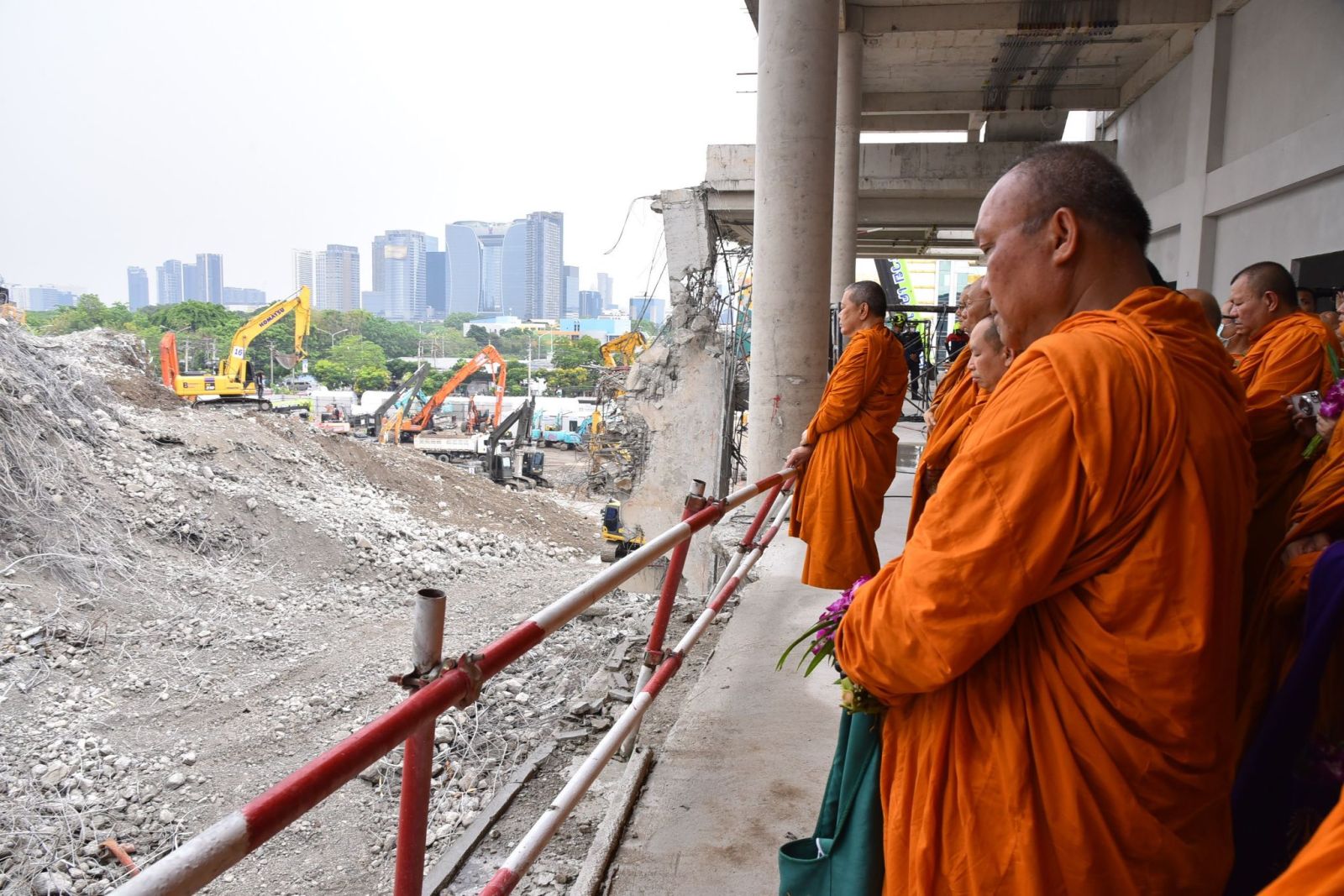 วันที่ 10 เมษายน 2568 เมื่อเวลา 14.00 น. ที่ อาคารจอดรถสถานที่ก่อสร้างอาคาร สตง. ถนนกำแพงเพชร 2 นายชัชชาติ สิทธิพันธุ์ ผู้ว่าราชการกรุงเทพมหานคร เป็นประธานจัดพิธีสวดพระพุทธมนต์ เพื่อผู้ประสบภัยและผู้สูญหาย แผ่นดินไหว กรณีตึกถล่ม พื้นที่เขตจตุจักร โดยมีสมเด็จพระมหารัชมงคลมุนี (เจ้าคุณธงชัย) เจ้าคณะใหญ่หนกลาง , กรรมการมหาเถรสมาคม , วัดไตรมิตรวิทยารามวรวิหาร เป็นประธานฝ่ายสงฆ์ และมีเจ้าคณะกรุงเทพมหานคร เป็นผู้นำคณะสงฆ์กรุงเทพมหานคร จำนวน 103 รูป สวดพระพุทธมนต์ ให้กับผู้ประสบภัยและผู้สูญหาย ที่ยังติดค้างภายใต้ซากอาคาร โดยมีคณะผู้บริหารกรุงเทพมหานครญาติผู้ประสบภัยเจ้าหน้าที่ผู้ปฏิบัติงาน และนายมณเฑียร เจริญผล ผู้ว่าการตรวจเงินแผ่นดิน (ผู้ว่าฯ สตง.)เข้าร่วมพิธี
