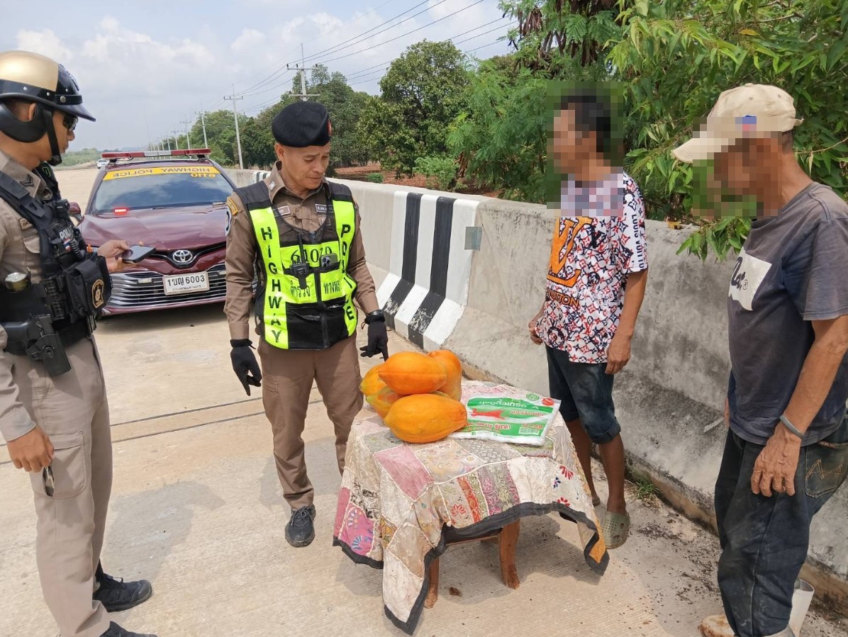 วันนี้ 11 เม.ย.69 ส.ทล1 กก.6 บก.ทล. โดย ร.ต.ต.ธีระวัฒน์ บุราคร พร้อม ด.ต.นพดล ฤทธานันท์ ได้รับแจ้งจากผู้ใช้เส้นทางว่ามี ชาวบ้านได้ตั้งร้านขายผลไม้ มาวางขายไหล่ทางบนมอเตอร์ M6 ขาออก กทม. ช่วง กม.93 ต.กลางดง จ.นครราชสีมา จนท.ไปตรวจสอบ พบมีการตั้งขายของจริง จึงได้ว่ากล่าวตักเตือน และบอกห้ามนำสิ่งของมาขายในพื้นที่ดังกล่าง เพราะจะมีโทษตามกฎหมาย