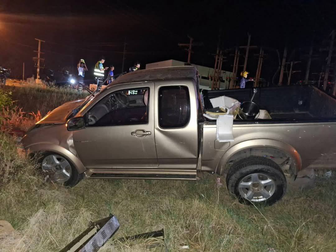 รถกระบะชนเสาไฟฟ้า ริมถนนบ้านโนนสวรรค์ พบผู้เสียชีวิต 1 ราย จ.บุรีรัมย์
