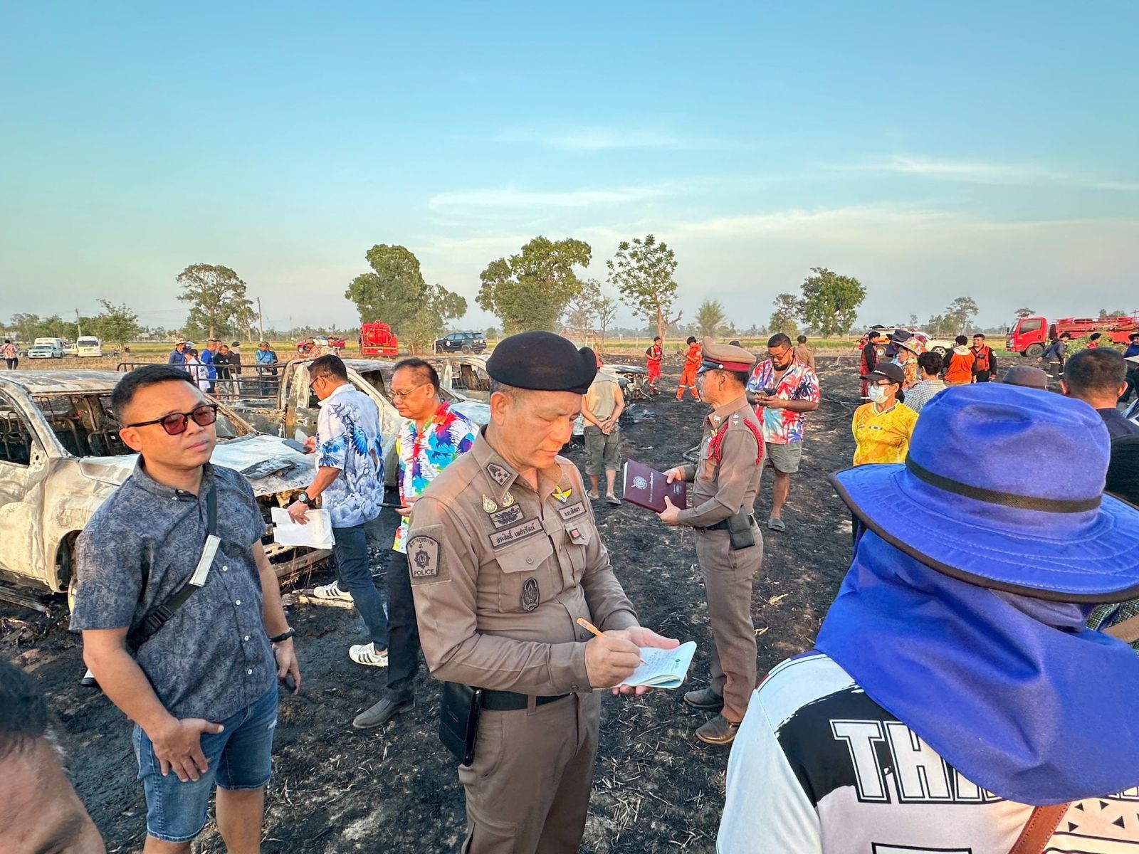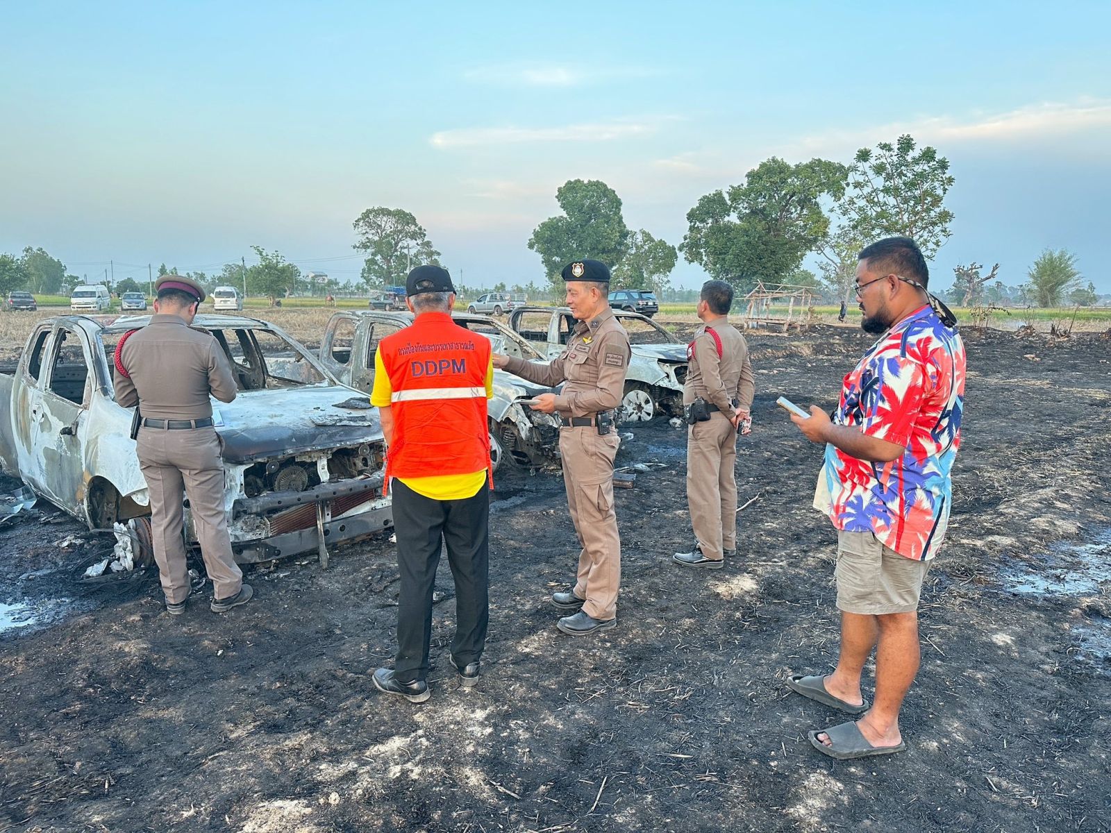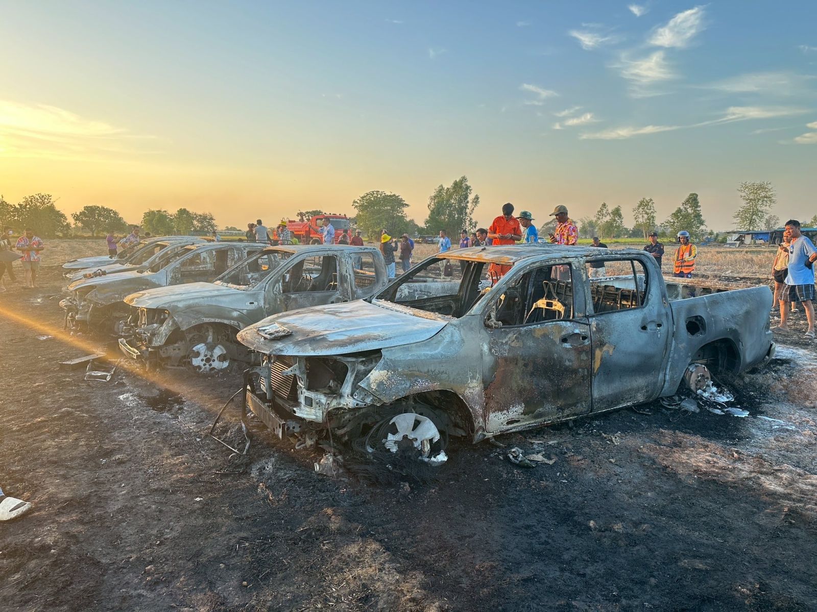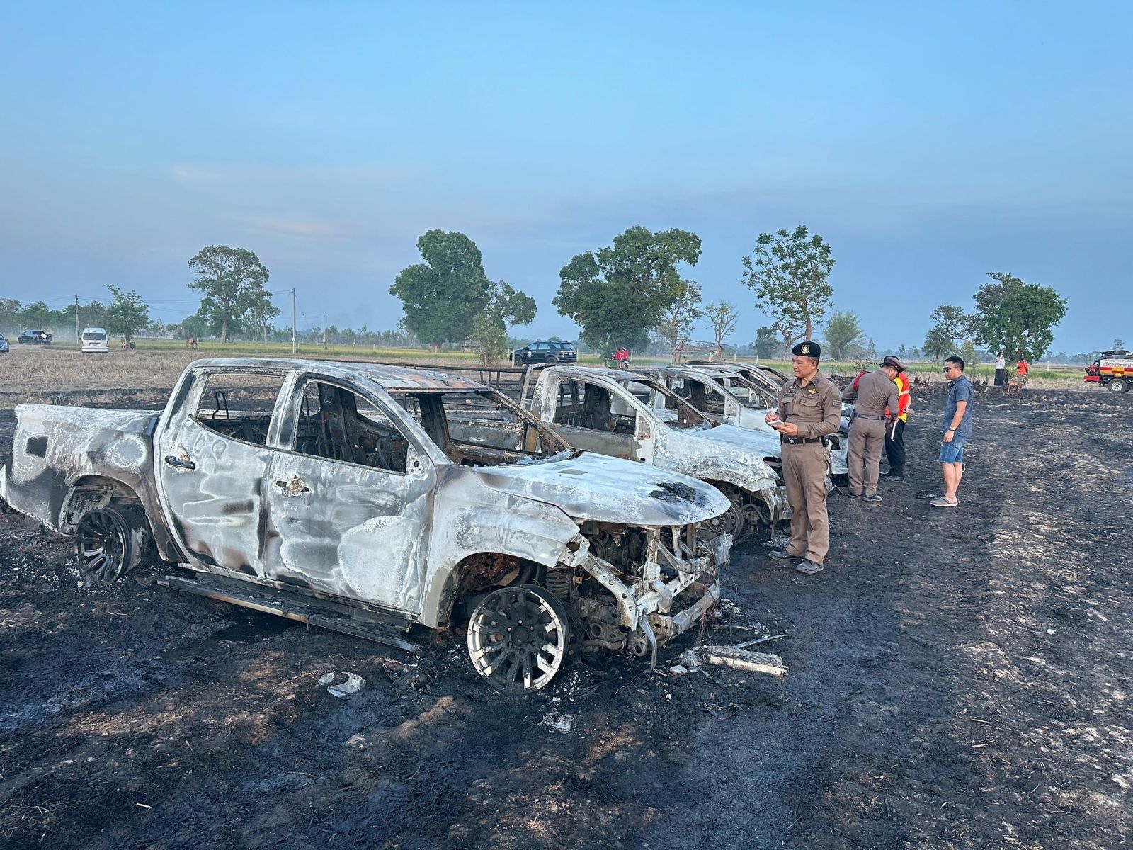 ระทึก! ไฟไหม้รถเซียนบั้งไฟกลางทุ่งนา ที่ยโสธร เสียหาย 5 คัน ตร.สันนิษฐานน่าจะเกิดจากลืมโทรศัพท์หรือแบตสำรองไว้ในรถ ไม่ได้เกิดจากฐานจุดบั้งไฟระเบิด